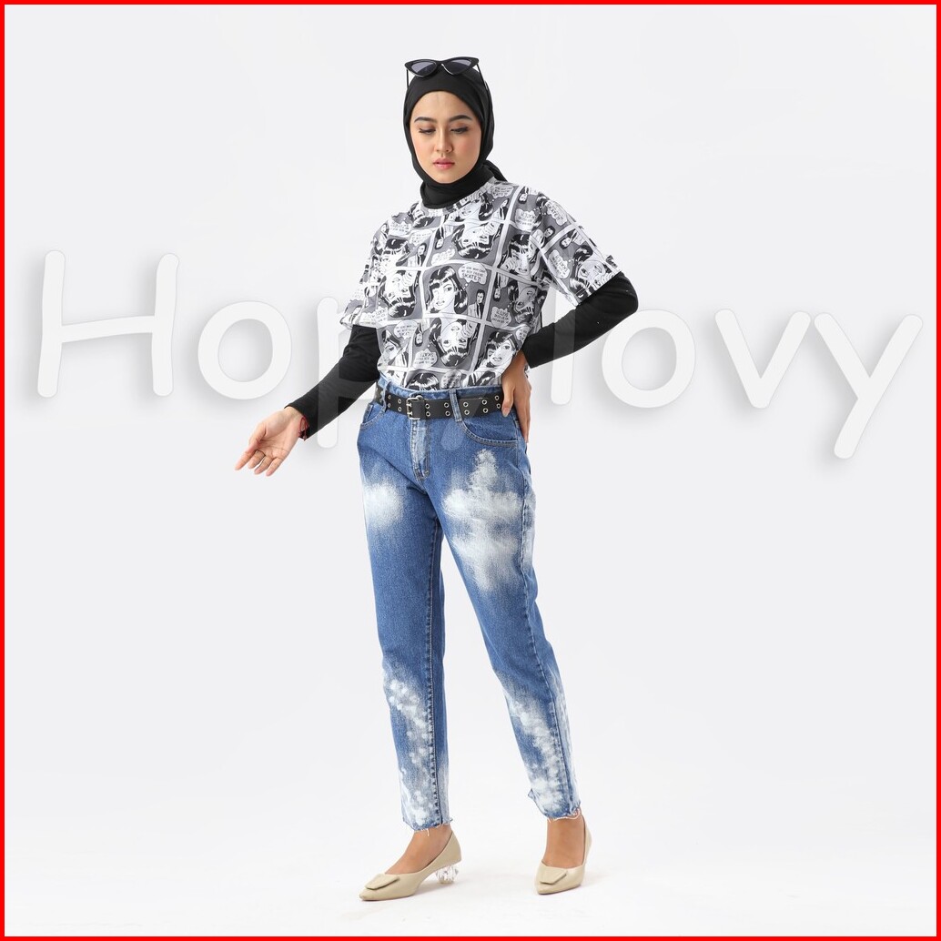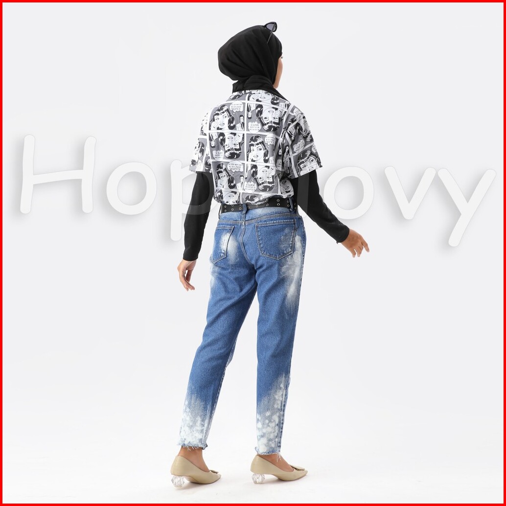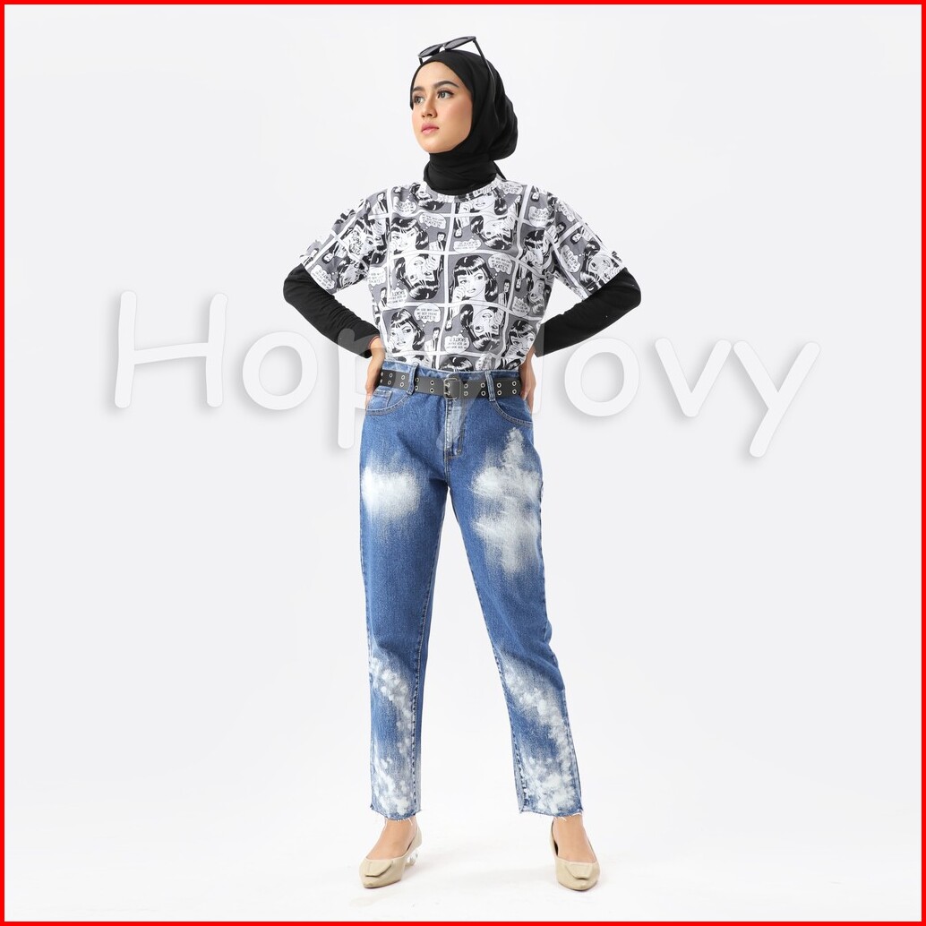 Hopylovy - Celana Boyfriend Jeans Wanita Bf Tie Dye White Stain Avrina