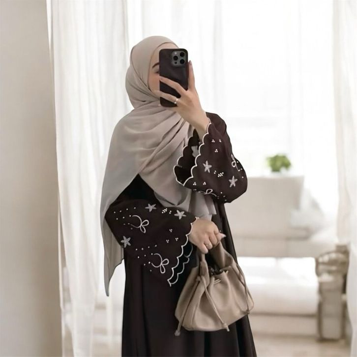 GAMIS LEBARAN 2026 GAMIS ABAYA TURKEY BASIC BORDIR COQUETTE BAGIAN TANGAN BAHAN WOOLPEACH LUX ABAYA WANITA ABAYA REMAJA