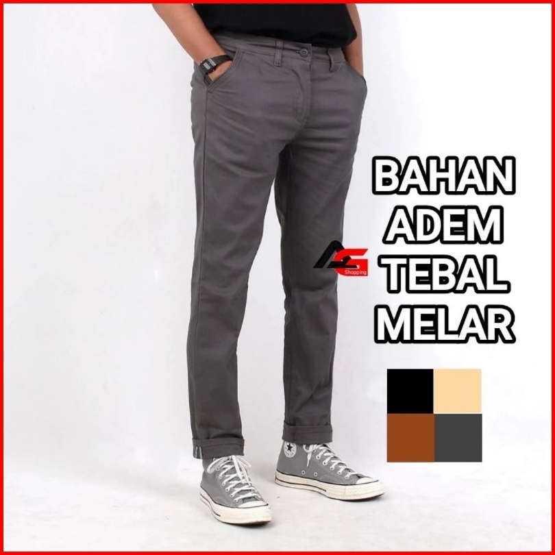 Celana Chino Panjang Pria Slimfit Katun Strecth Melar Cocok Buat Kerja Harian