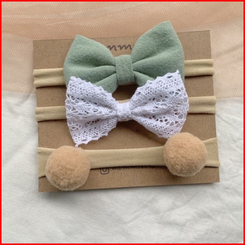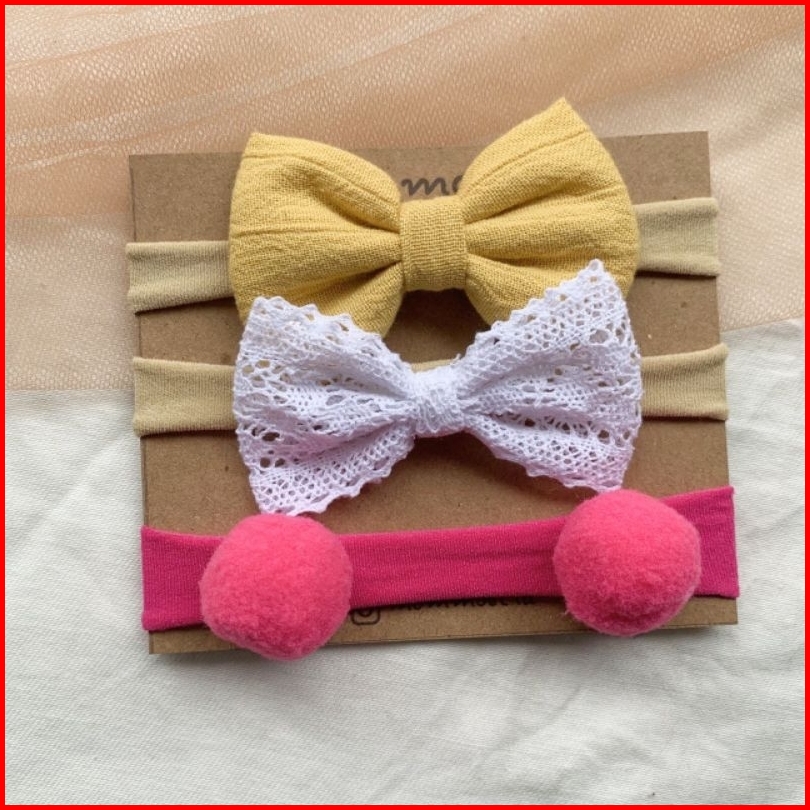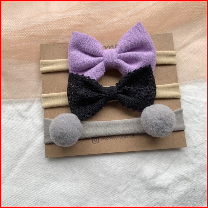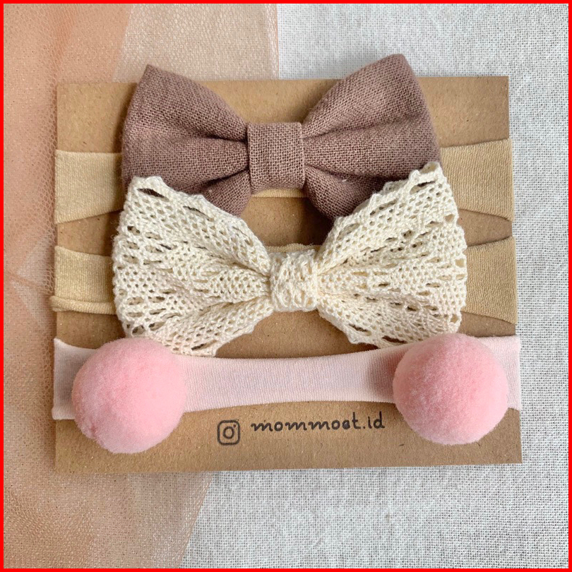 Mommoet.id Gauri Bandana Bayi Premium Series Set Isi 3 Nylon Headband Bandana Newborn