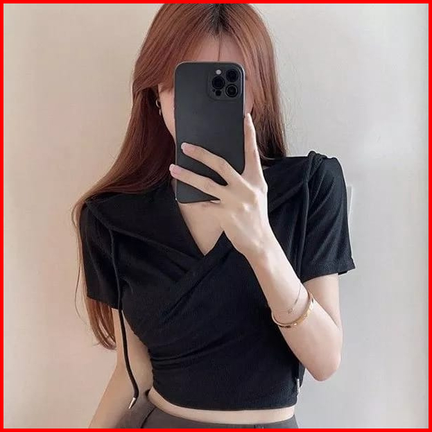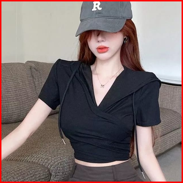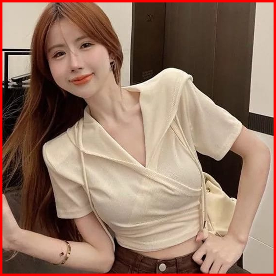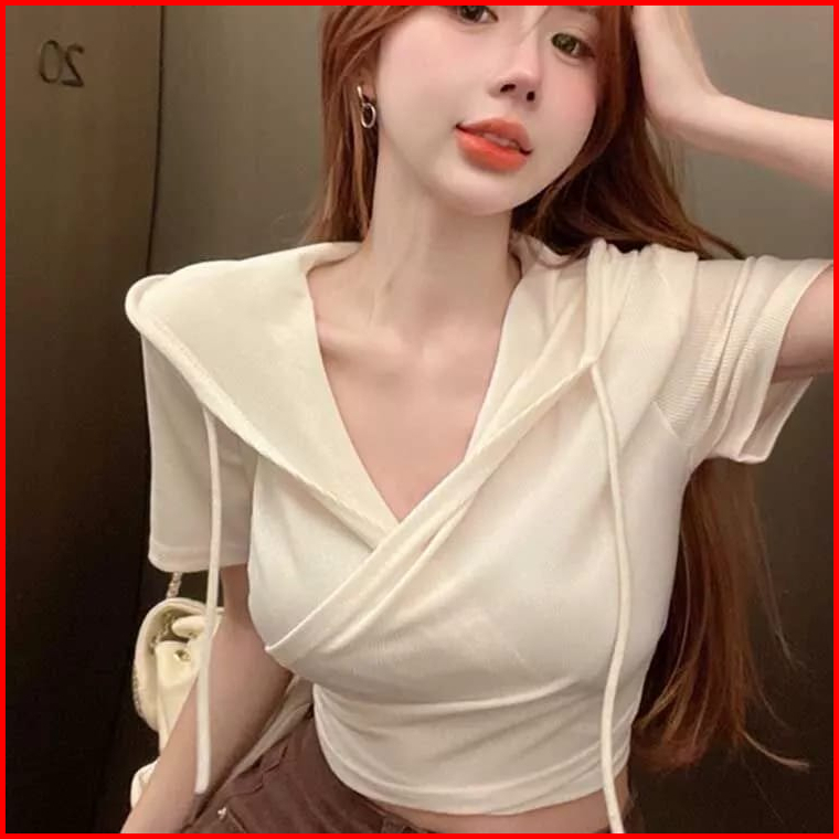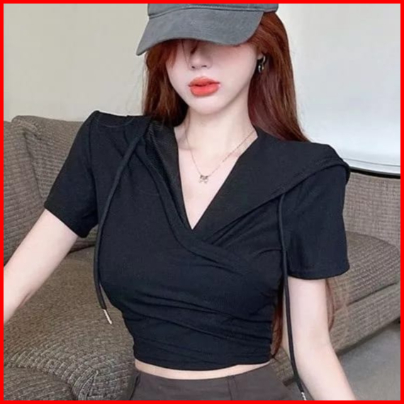 Premiumhoodie Crop Top Short Sleeve T Shirt Women V Neck Top 1679 S-xl