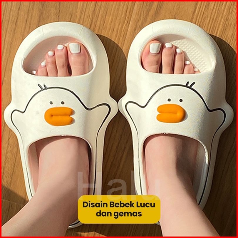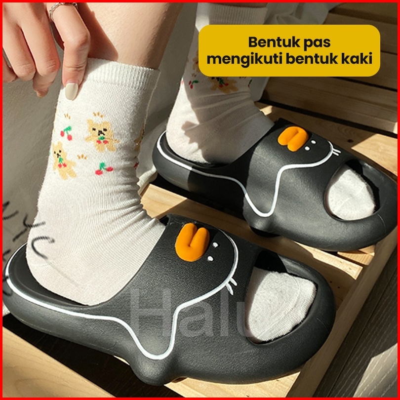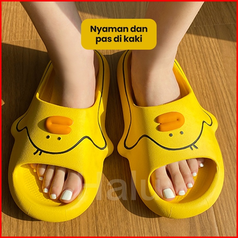 Halu Sandal Wanita Terbaru Sandal Slop Karet Pvc Empuk Ringan Non-slip Elastis Sandal Jelly Sandal Karakter Lucu Kekinia