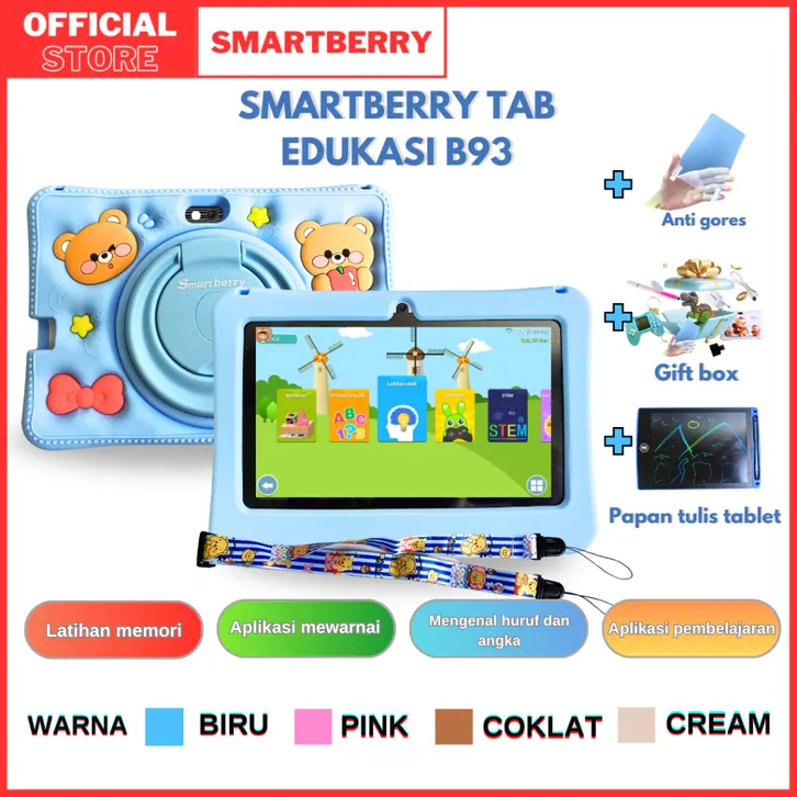 Tablet Anak SMARTBERRY KIDS STUDY B89 Plus / B93 / B95 4/128GB Layar 7 Inch / Hadiah Anak / Android 13 / 2 Camera