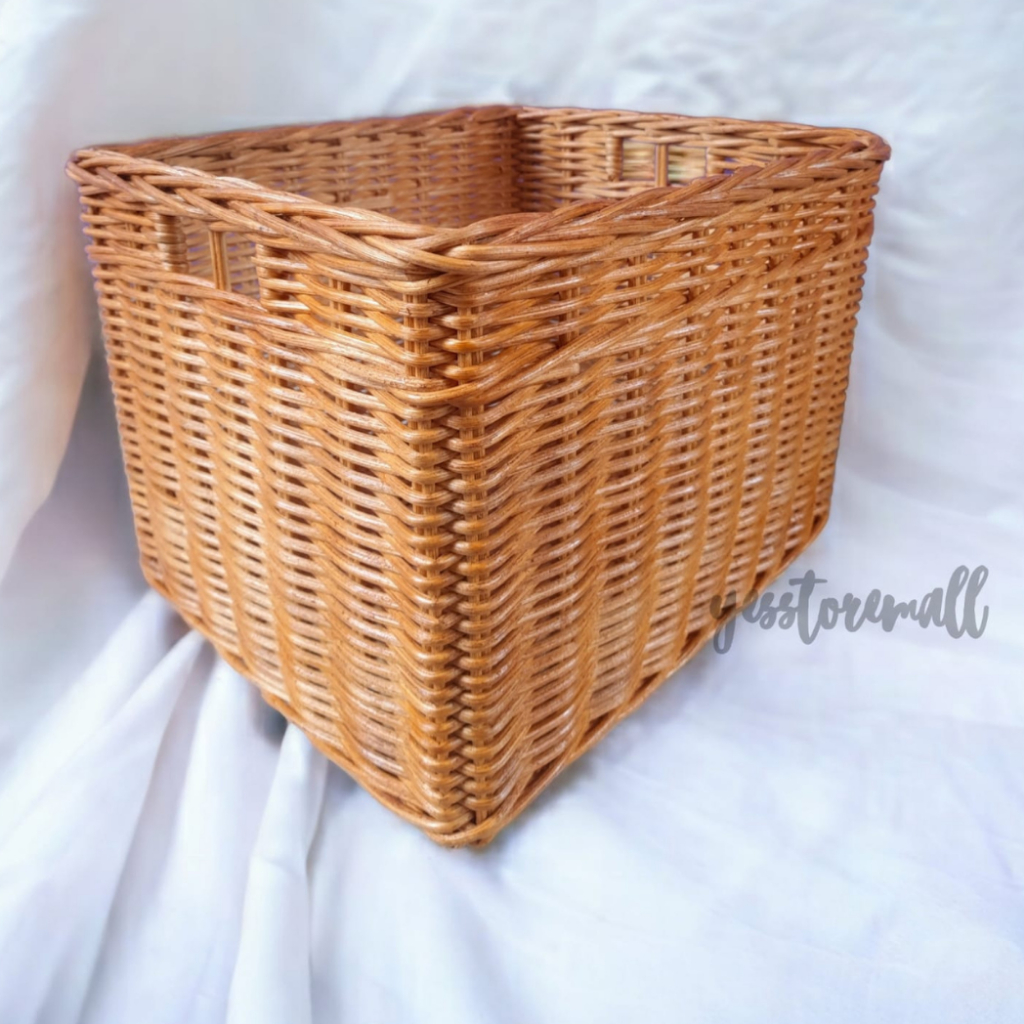 KERANJANG ROTAN KOTAK PERSEGI BESAR PENYIMPANAN BARANG MULTIFUNGSI TEMPAT / WADAH LACI LEMARI
