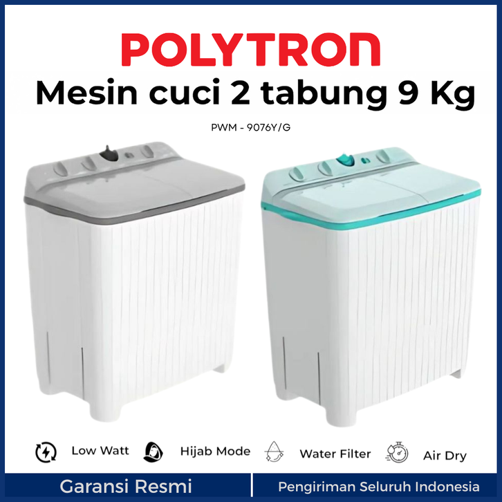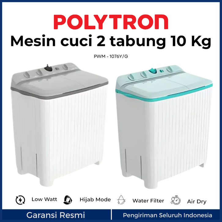 MESIN CUCI POLYTRON 2 TABUNG 10KG PWM 1076 Y/G GIANT SERIES HIJAB 10 9 8 7 KG POLITRON 9KG 8KG 7KG DUA TERBARU MURAH