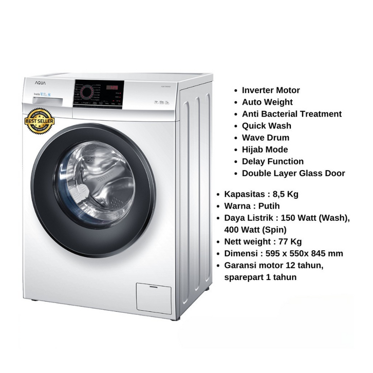 MESIN CUCI AQUA FRONT LOADING INVERTER 1 TABUNG KAPASITAS 9KG 8KG 7KG LAUNDRY MACHINE PINTU BUKAAN DEPAN 9 8 7 KG