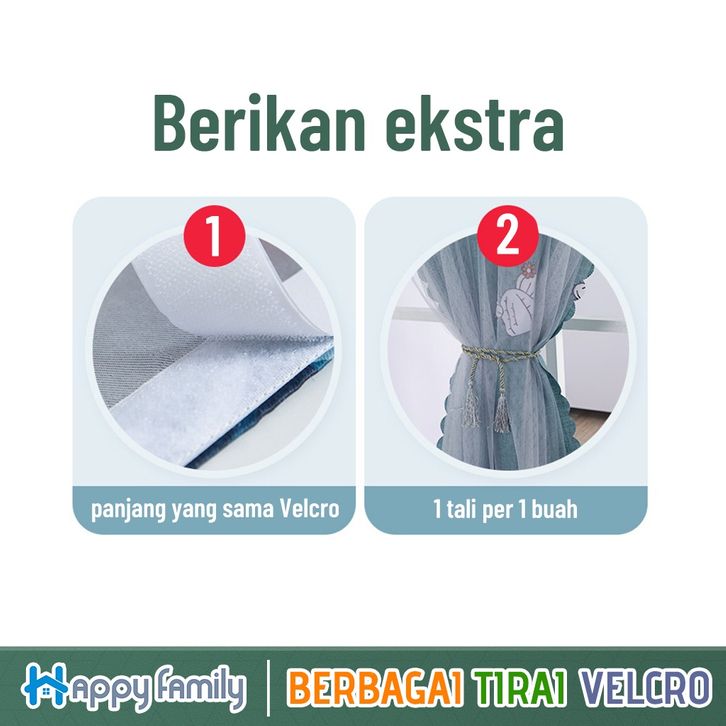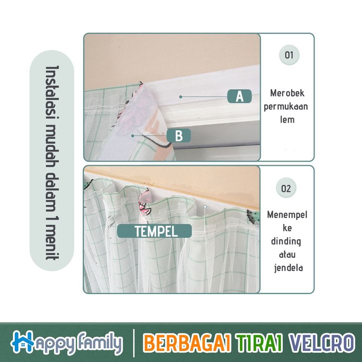 TIRAI HAPPYFAMILY TIRAI GORDEN JENDELA TEMPEL TANPA PAKU DAN BOR TIRAI MAGIC VELCRO TANPA PAKU 6 MOTIF TERBARU TERLARIS