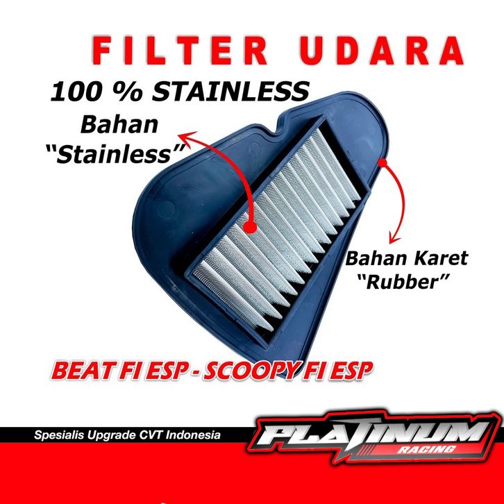 FILTER UDARA STAINLESS BEAT FI - SCOOPY FI ESP SARINGAN HAWA BEAT FI - SCOOPY FI ESP STAINLESS BISA DI CUCI STAINLES BY