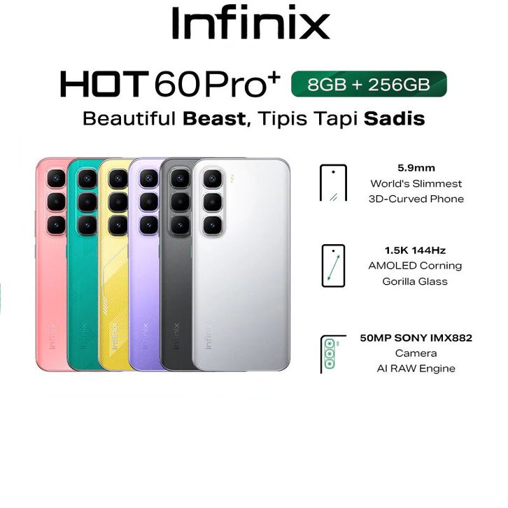 Infinix Hot 60 Pro+ 8/256GB & Hot 60 Pro 8/256GB | Hot 60i 8/256GB - Up to 16GB Extended RAM GARANSI RESMI 1 TAHUN Smart