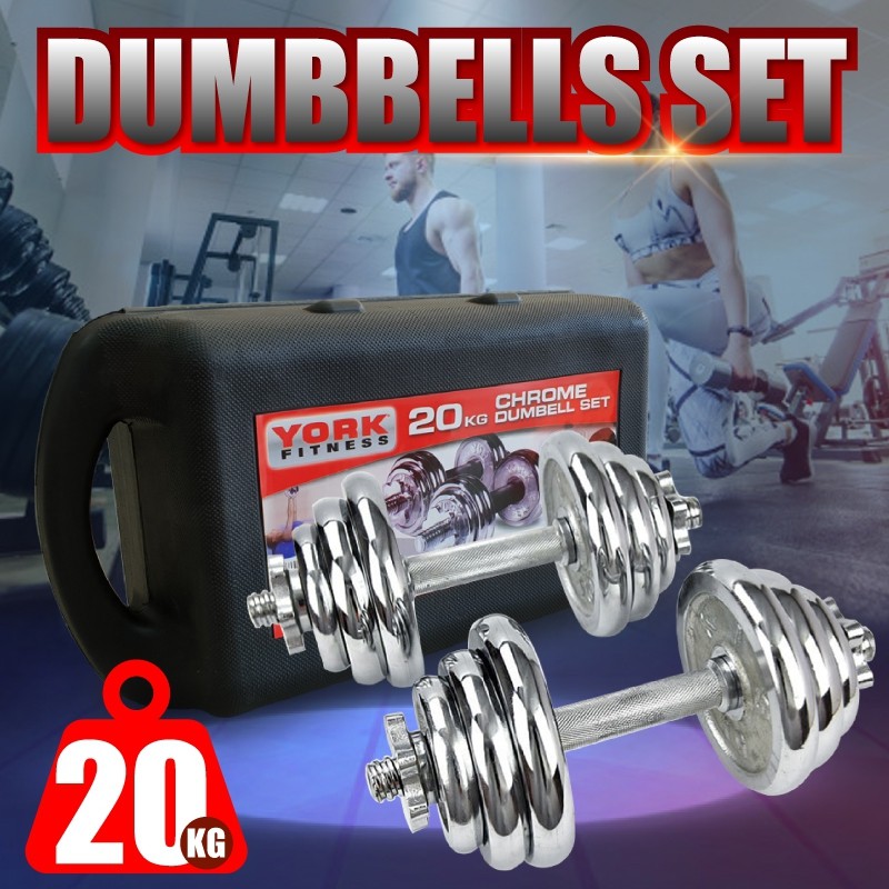 { PROMO - CICILAN } HTD SPORT DUMBBELL SET 20KG CHROME ALAT OLAHRAGA ANGKAT BESI CHROME
