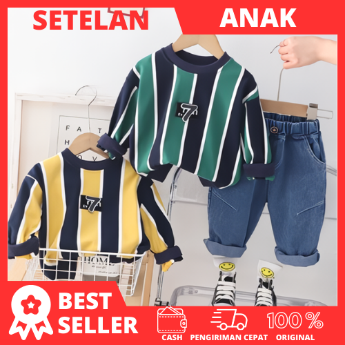 Setelan Sweater Anak Laki Laki Import Setelan Jaket Sweater Motif Garis Anak Balita Impor Stelan 2pcs setelan anak