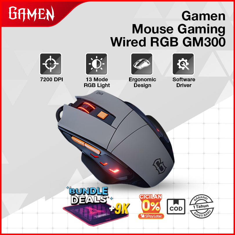 Gamen Mouse Gaming Kabel 7200 Dpi 6 Level Dpi 13 Mode Rgb 6 Macro Button Gm300 For Laptop Pc Original - Garansi 1 Tahun