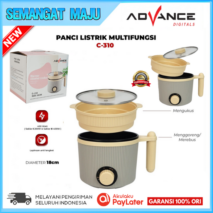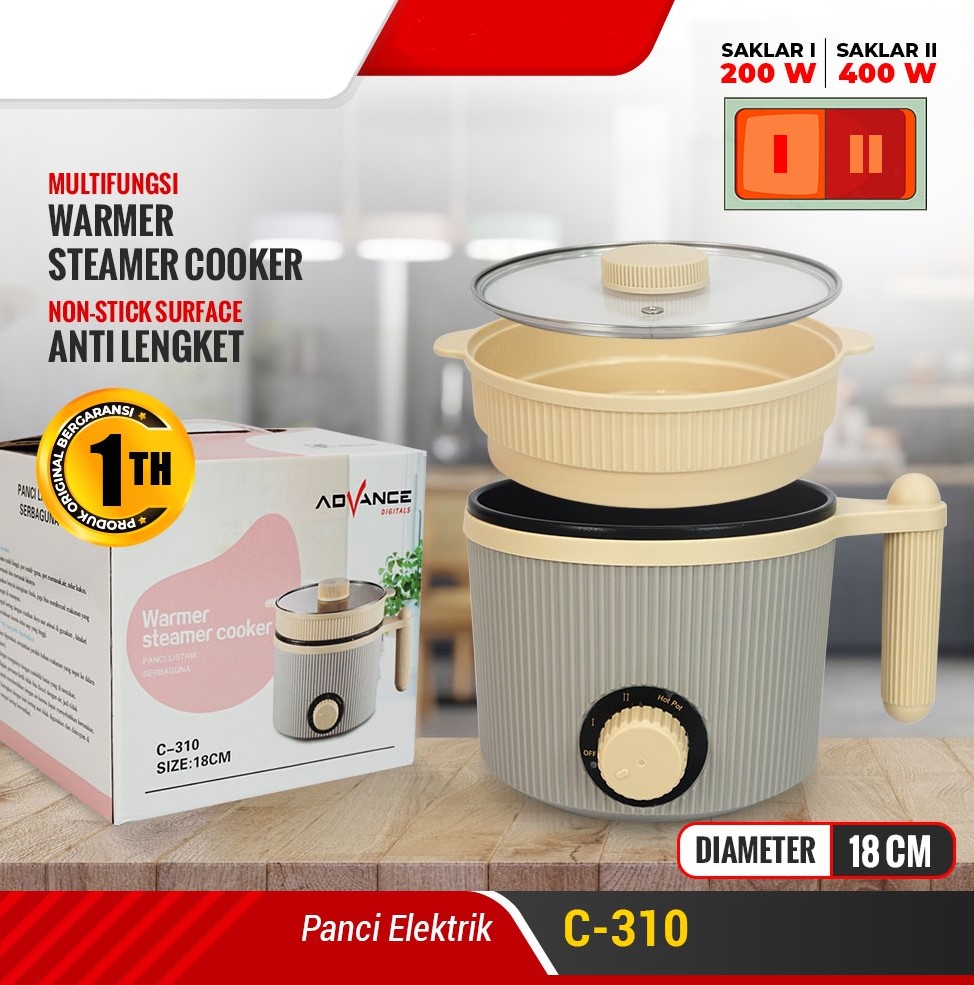 Advance Panci Listrik C310 Panci Multifungsi Warmer Steamer Cooker 18CM - GARANSI RESMI