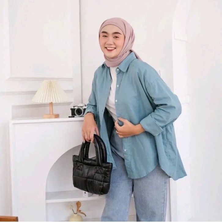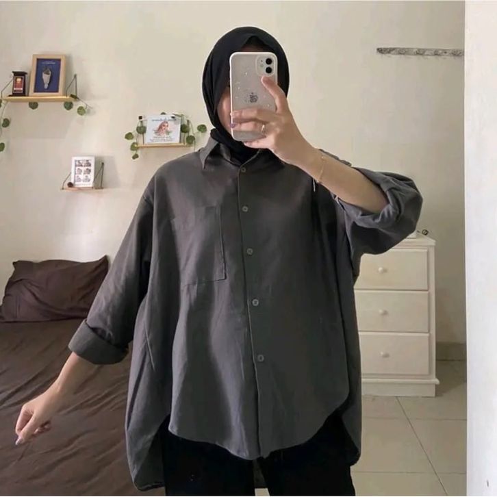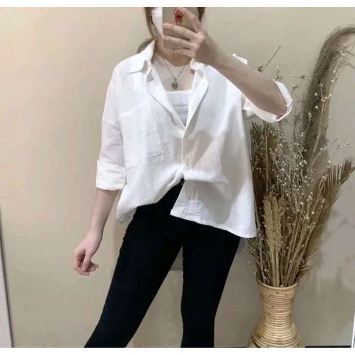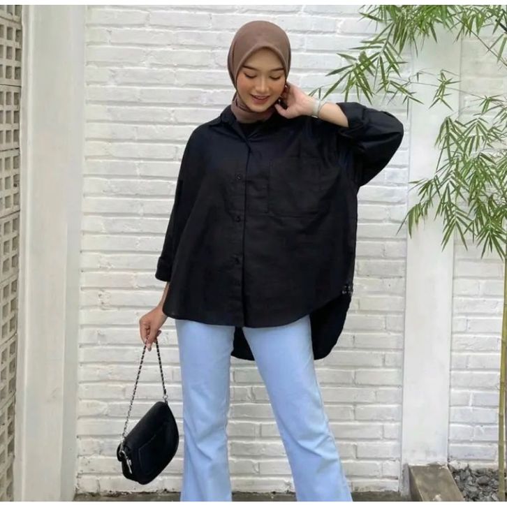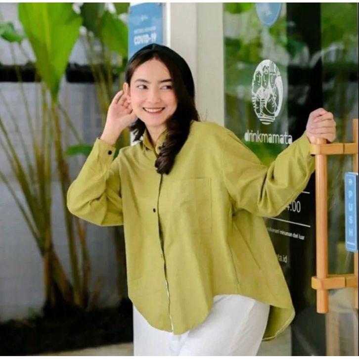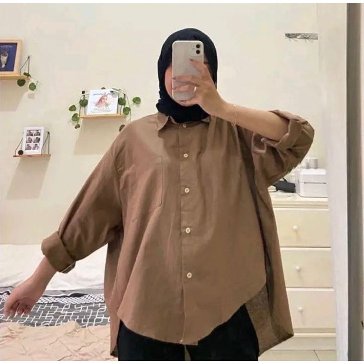 Kemeja Cewek Olivia Linen Oversize LD 120 Muat Big Size Blouse Cewek Fashion Baju Kerja Casual Allsize XL