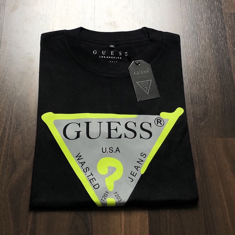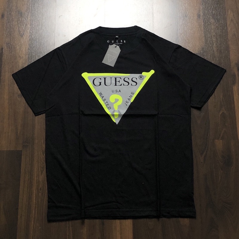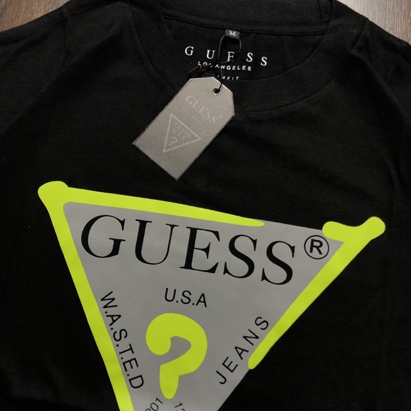 KAOS GUESS - LOGO NEON HITAM FULLTAG MIRROR 1:1 ORIGINAL / BAJU GUESS / TSHIRT GUESS / OVERSIZE