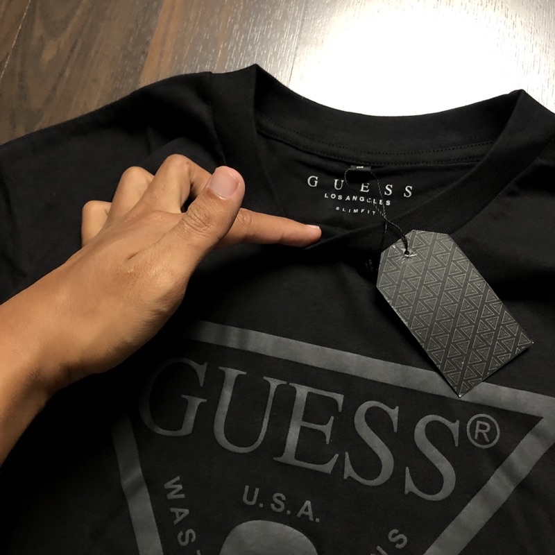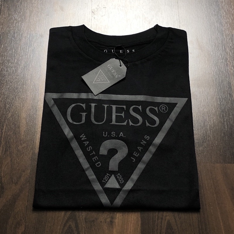 KAOS GUESS - LOGO BLACK HITAM FULLTAG MIRROR 1:1 ORIGINAL TSHIRT GUESS OVERSIZE