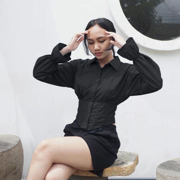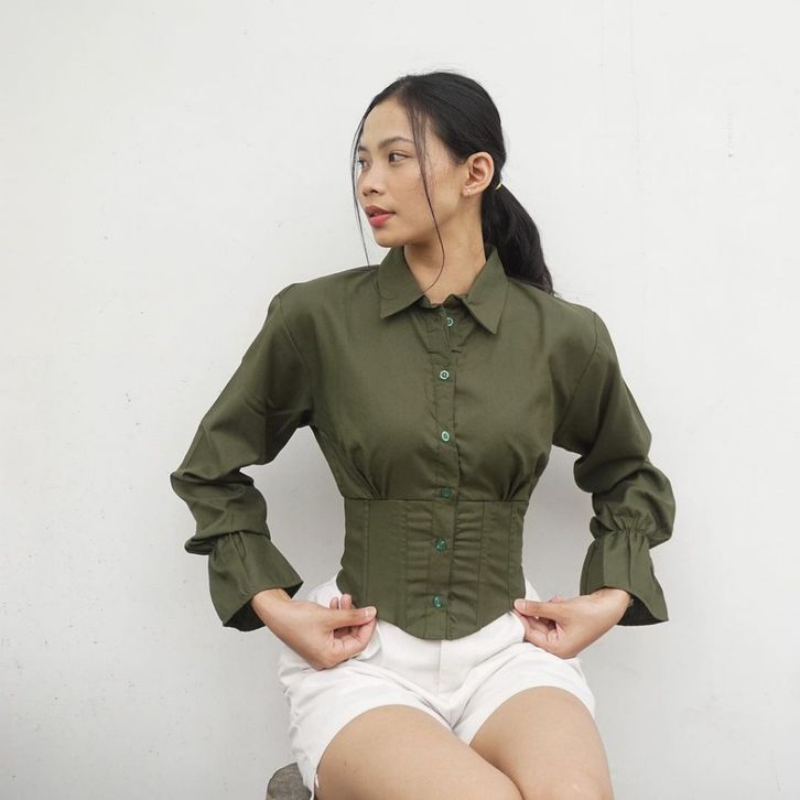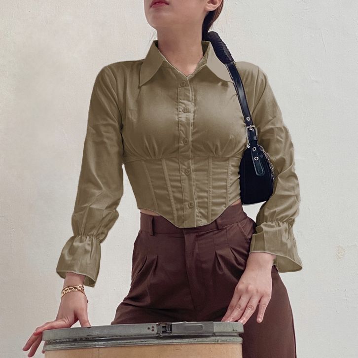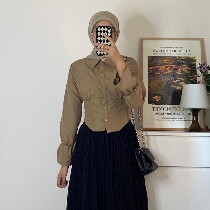 BAJU WANITA ATASAN BLOUSE KOREA PROMO SPESIAL BAJU KEMEJA BLOUSE CROP TOP KANCING DEPAN LENGAN PANJANG TERMURAH TERLARIS