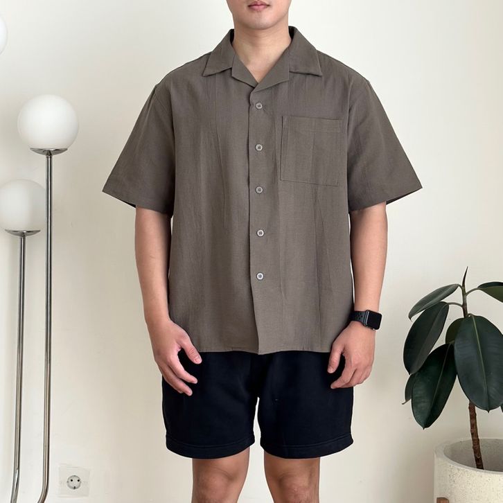 ATASAN PRIA PENDEK KEMEJA PENDEK KAOS OVERSIZED LINEN SHIRT KEMEJA LINEN BOWLING POLOS PRIA KERAH TERBUKA LENGAN PENDEK