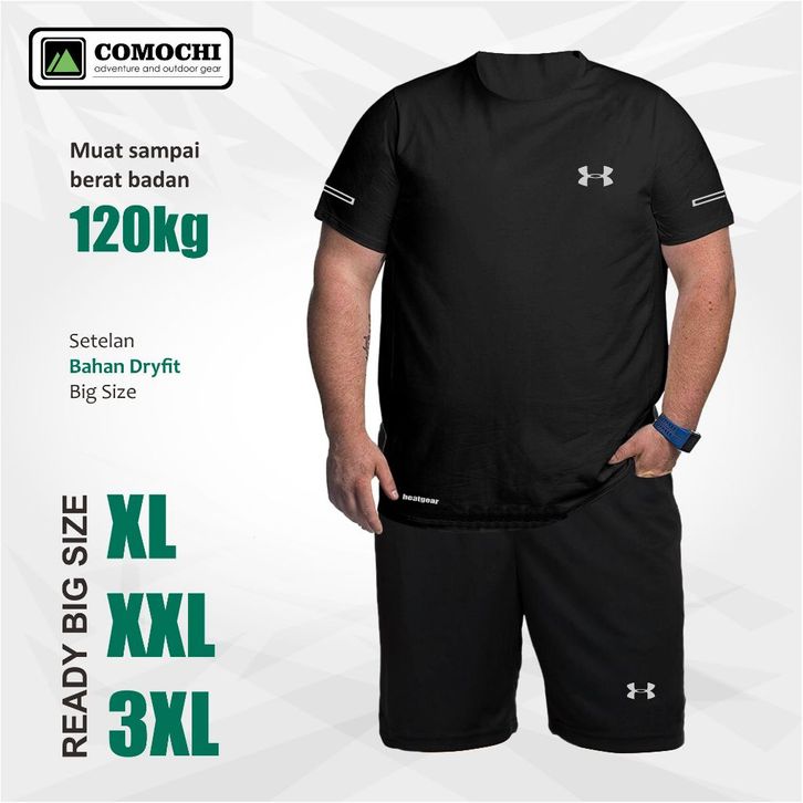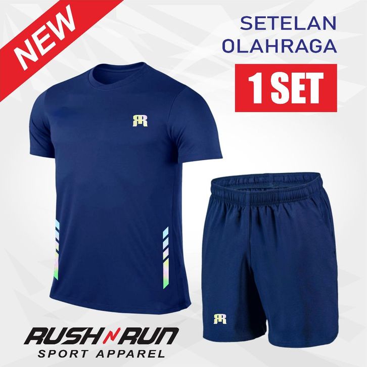 Setelan Olahraga Pria Jumbo Baju Kaos Drifit Dry Fit Pria Wanita Warna Navy 1 Set Atasan Dan Bawahan Celana Sport XXXL