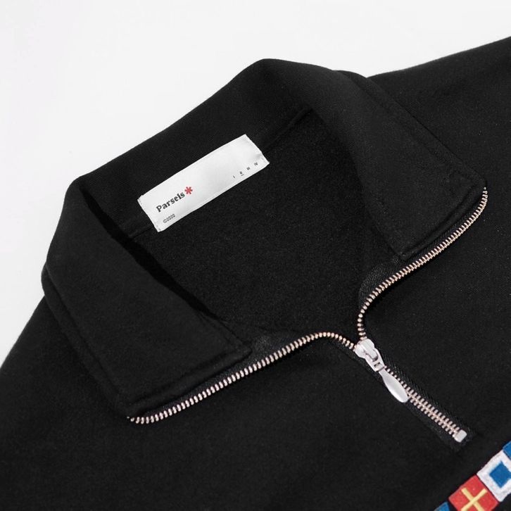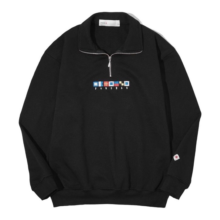 PARSELS Sweater Pria Half Zip Motel Blue Quarter Zip Sweatshirt Switer Cowok Sweter Sweater Oversize Kekinian