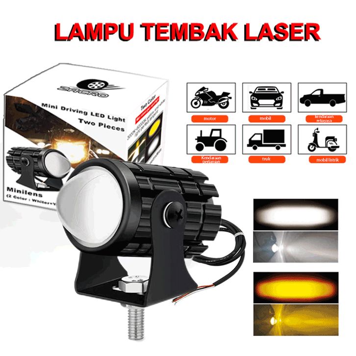 LAMPU LED MOTOR ZACRO ORIGINAL 1PCS LAMPU TEMBAK LASER PENGGERAK EKSTERNAL 2 WARNA HIGH LOW PUTIH KUNING WATERPROOF ORI