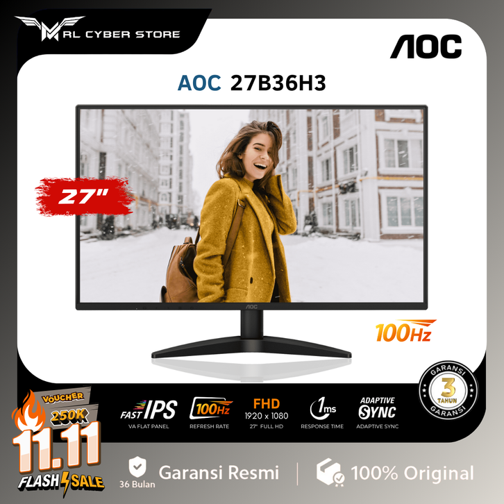 AOC 27B36H3 MONITOR PC 27 INCH FHD IPS 120Hz 1ms Adaptive Sync HDMI VGA GRATIS ONGKIR