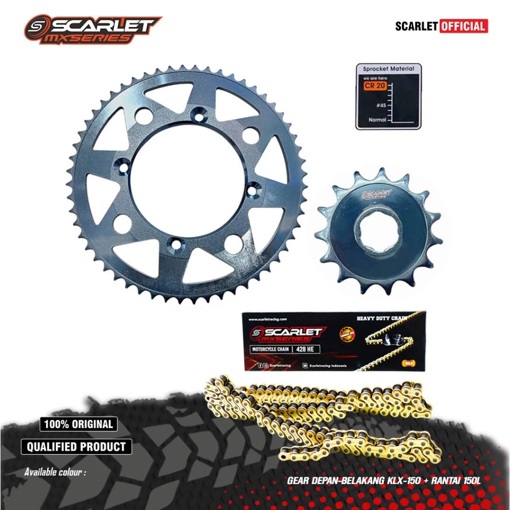 Scarlet Racing - Gear Gir Set Depan Belakang Titanium Series KLX 428 Plus Rantai Gold 150L