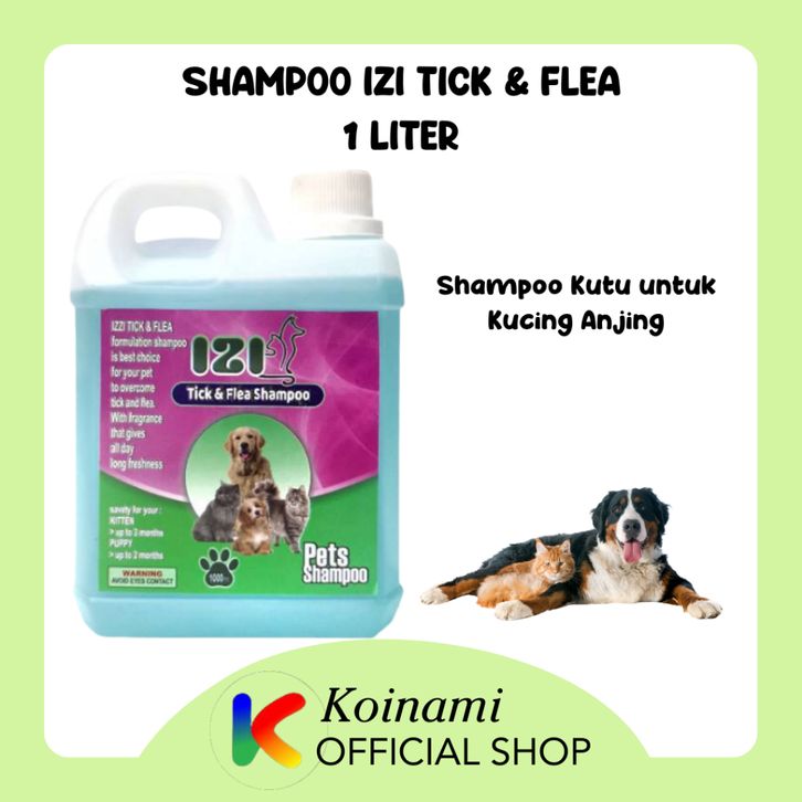DISKON SHAMPO IZI TICK & FLEA 1 liter BIRU / SHAMPO KUTU kucing anjing / pet SHOP / GROOMING / TALI MAS