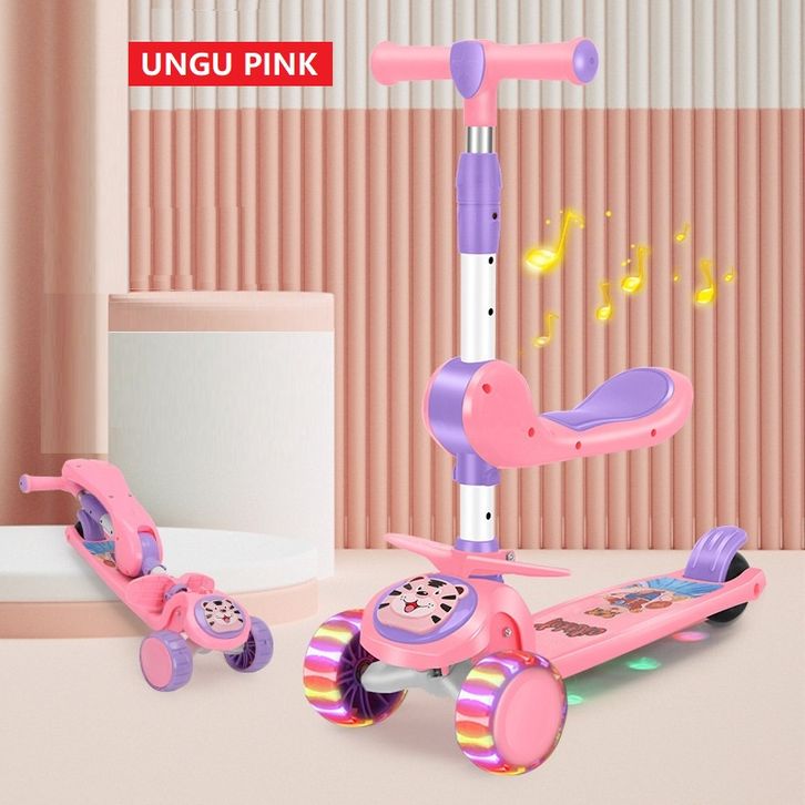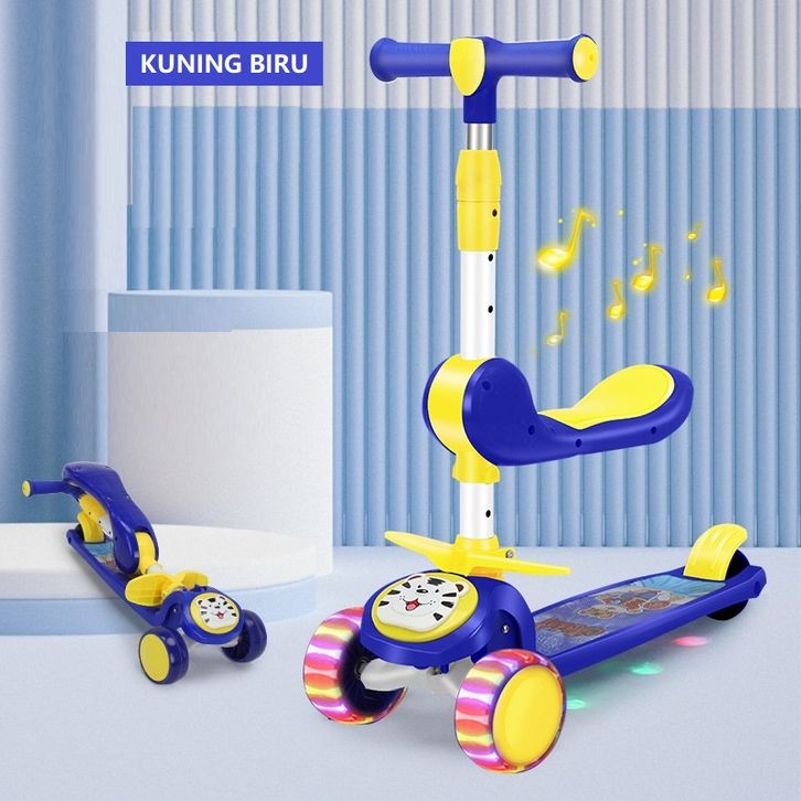 SKUTER ANAK MODEL KEKINIAN DENGAN BANGKU DAN MUSIK 3 RODA 3 IN 1 OTOPED LED | SCOOTER OTOPED LAMPU RODA 3 PUNYA REM