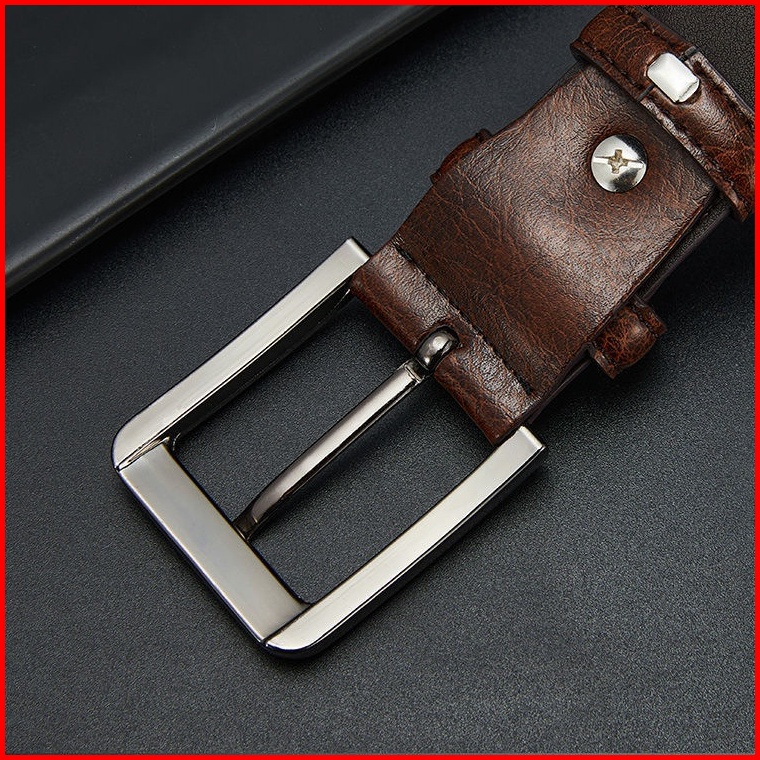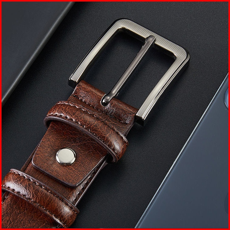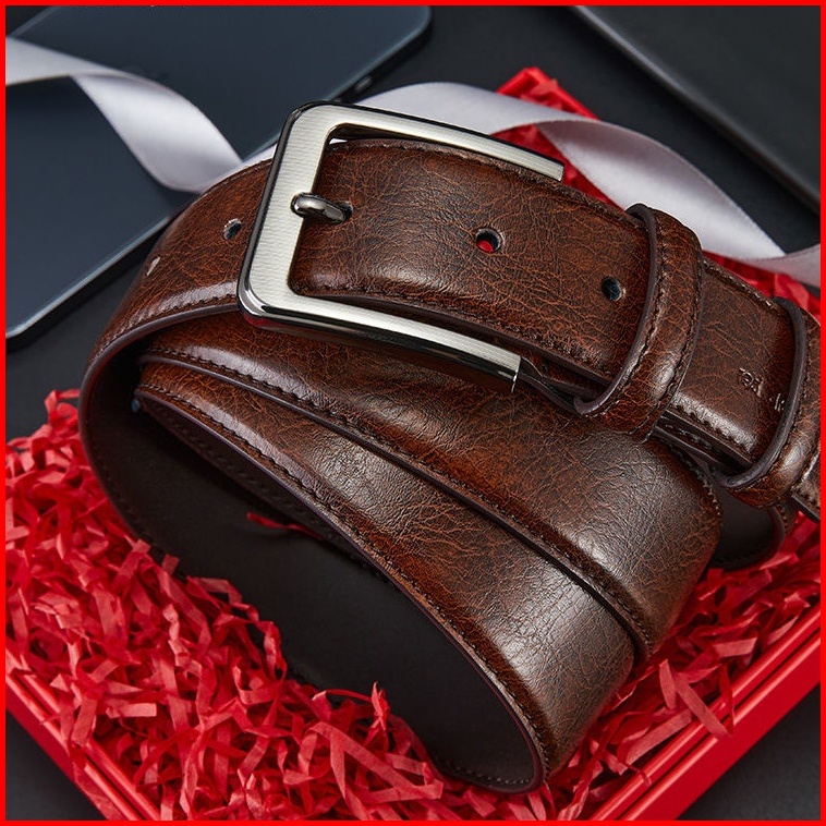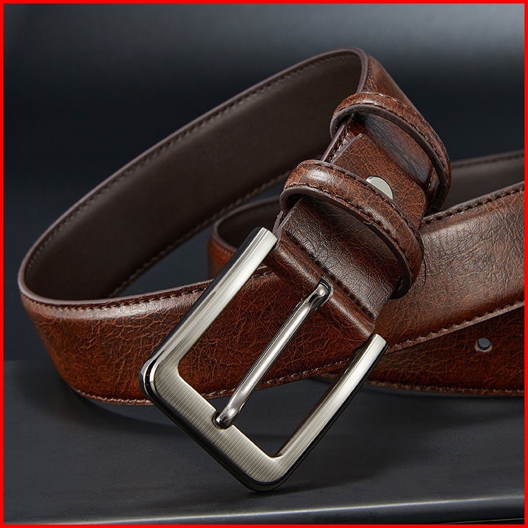 Bgs-079-ikat Pinggang Pria Gaya Kancing Pin Klasik Sederhana Fashion Kulit Sapi 2 Lapisan