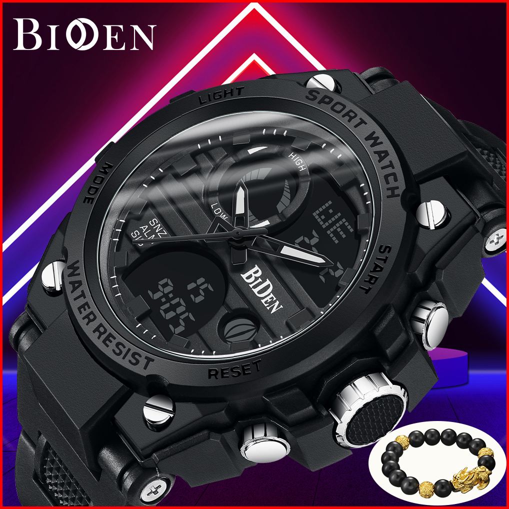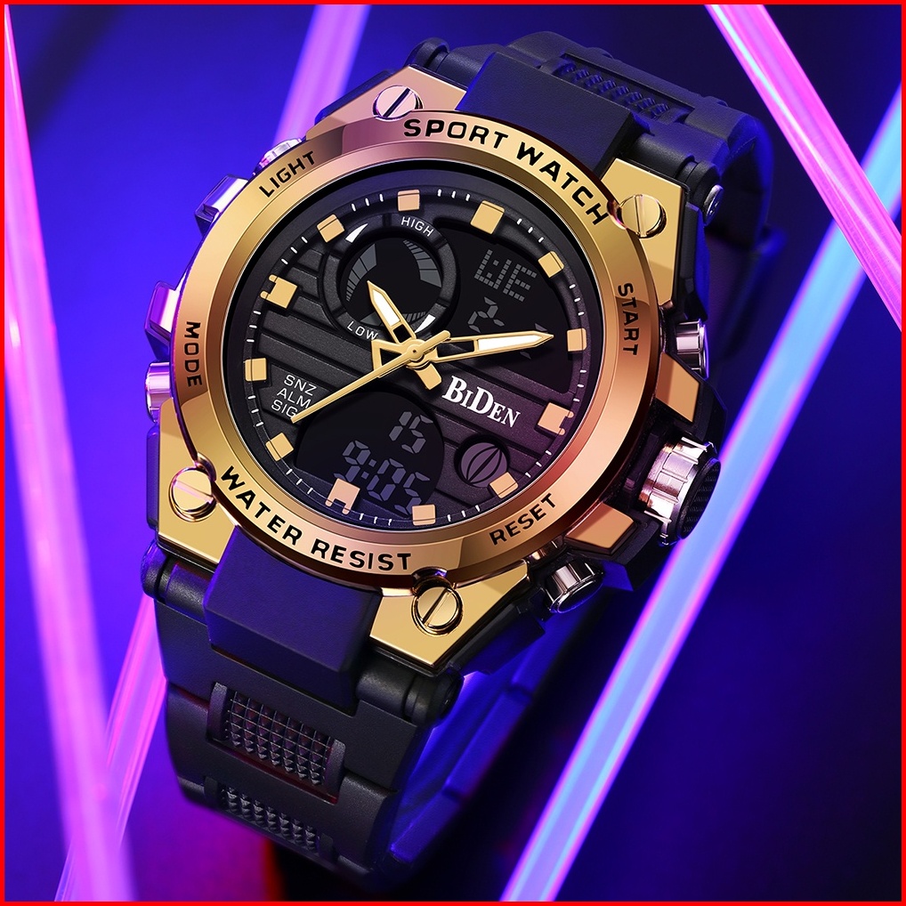 Biden Jam Tangan Pria Digital Analog Anti Air Olahraga Militer Pria Tali Silikon Luminous Jam Tangan Cowok Original