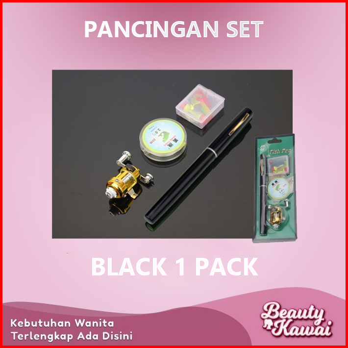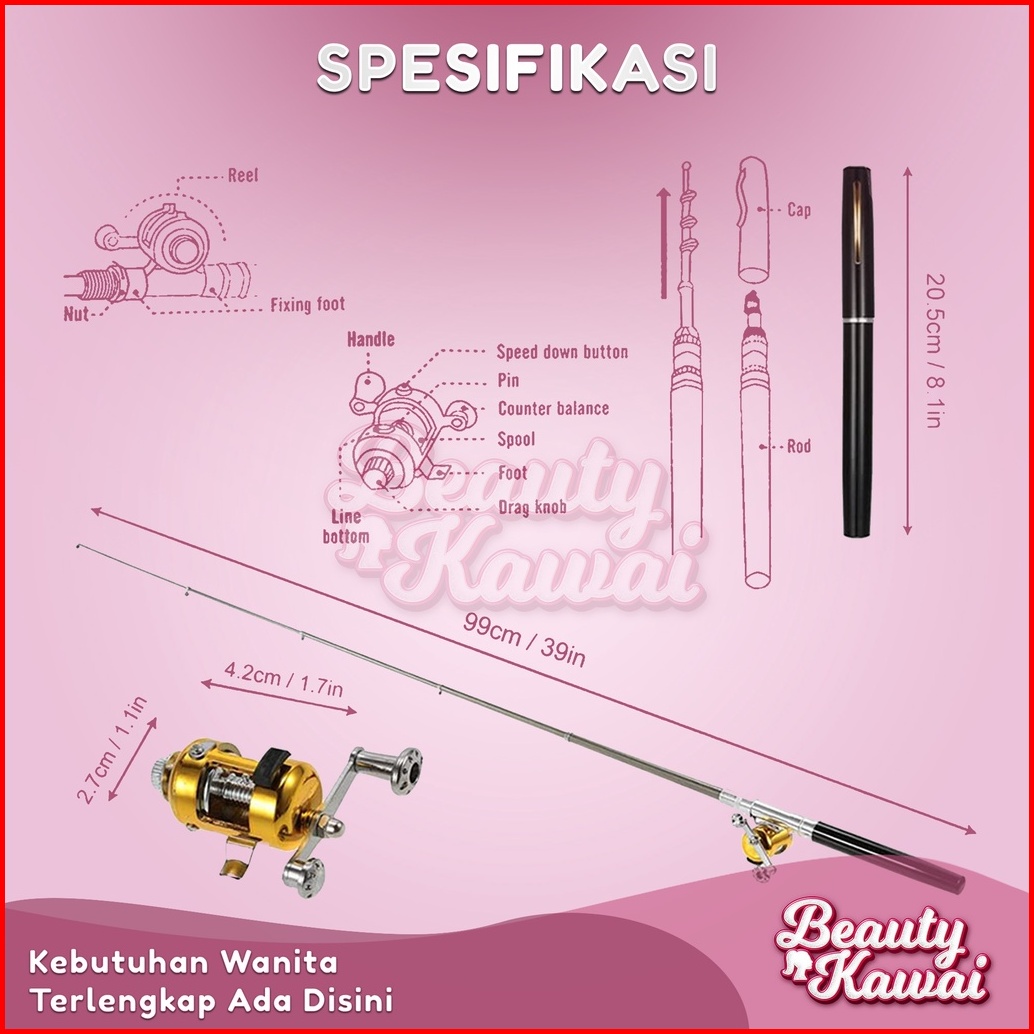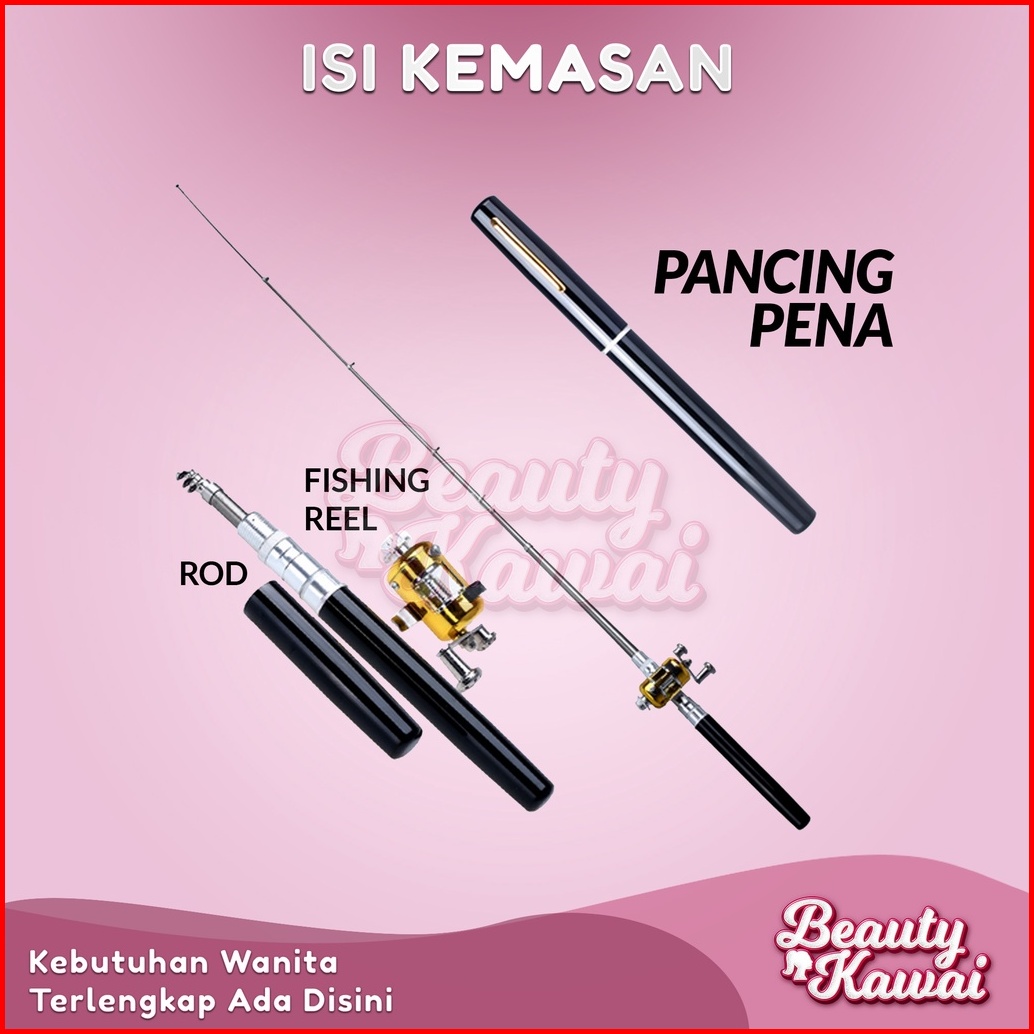Pancingan Pena 1m Set Lengkap Kail Pelampung Benang Joran Mini Fishing Rod Pen Portable