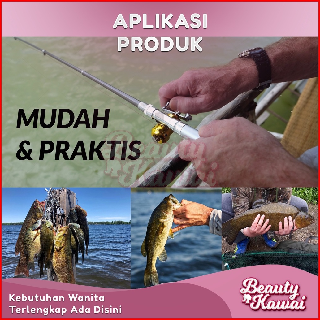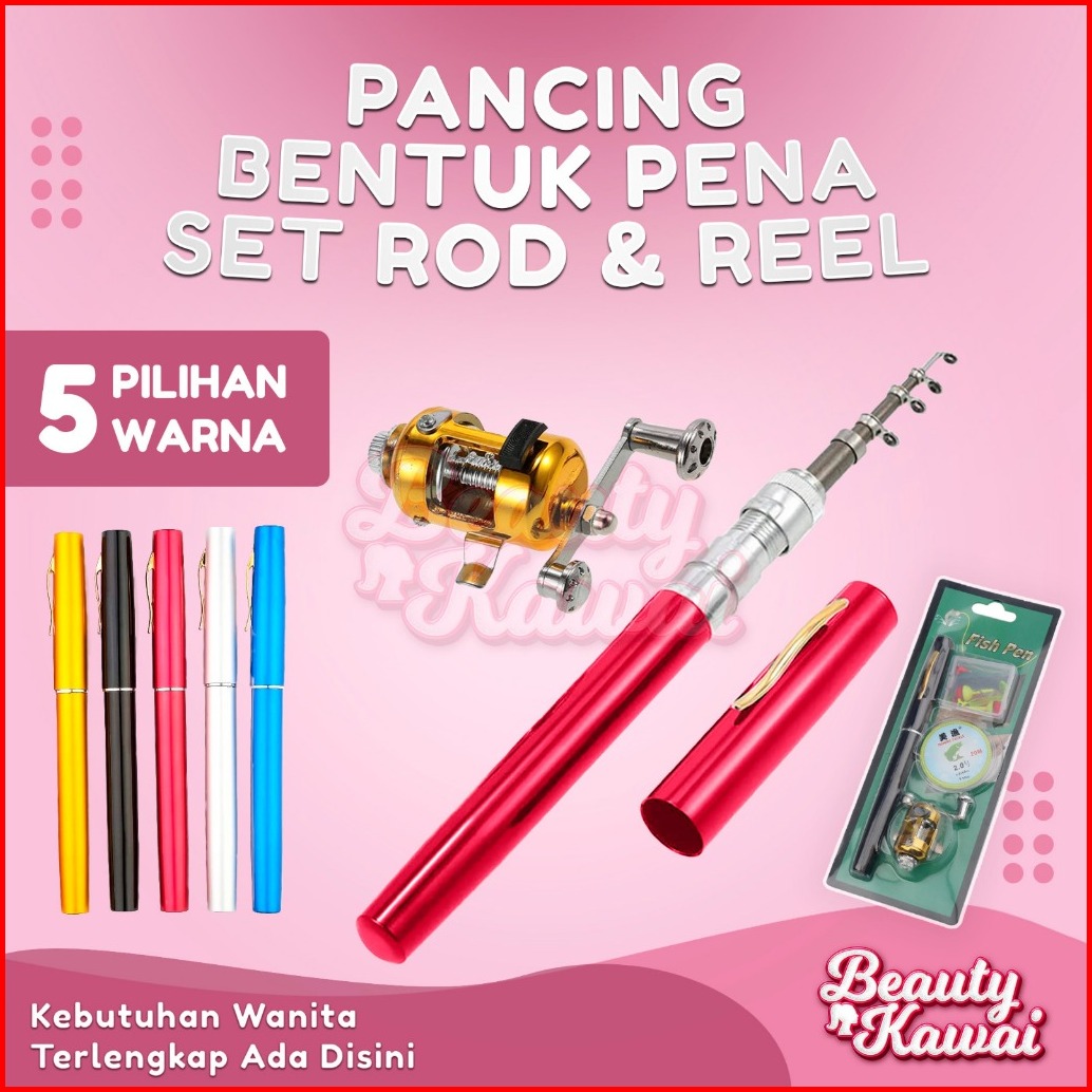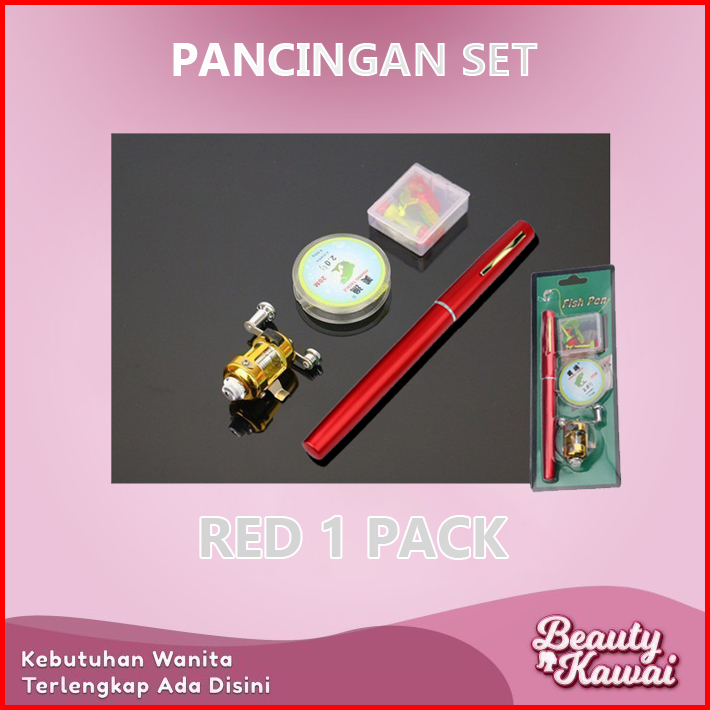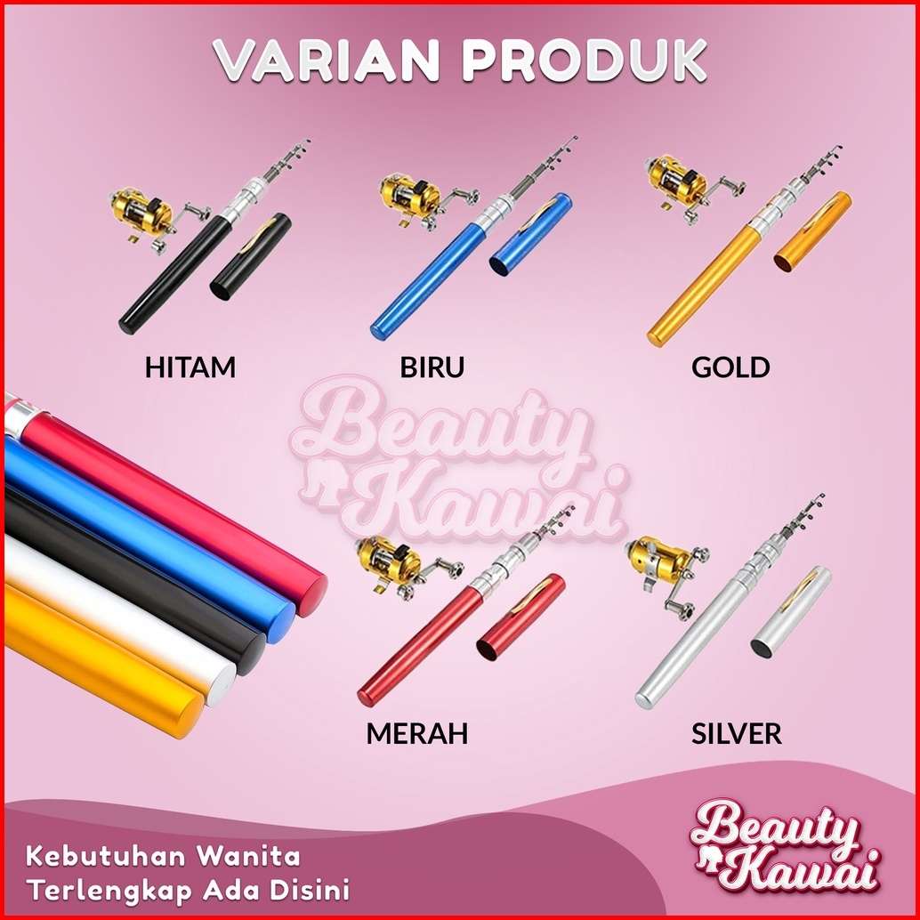 Pancingan Pena 1m Set Lengkap Kail Pelampung Benang Joran Mini Fishing Rod Pen Portable