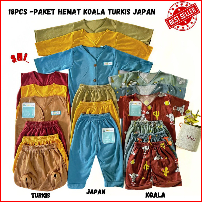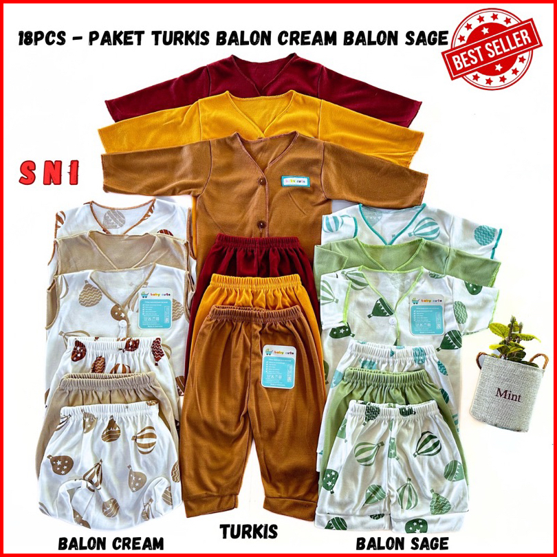 Nakita 18pcs Paket Perlengkapan Baju Bayi Celana Bayi Stelan Lengan Panjang Pendek Combo Mix Printing Bayi Baru Lahir Sn