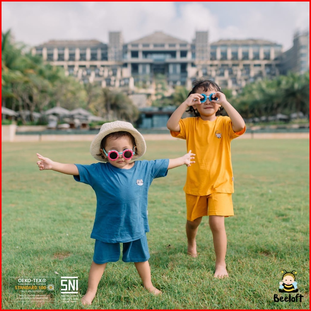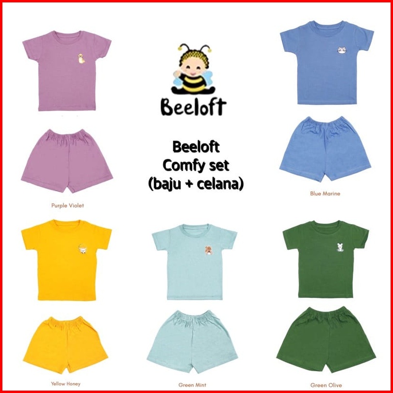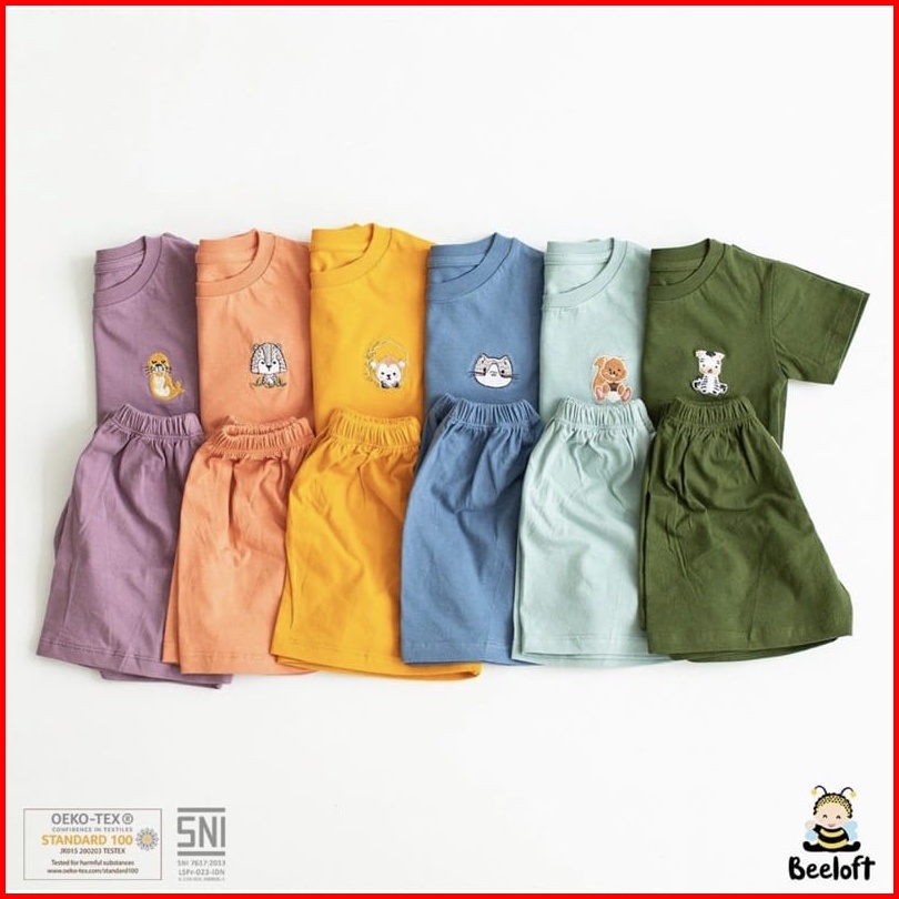 Beeloft Setelan Pendek Baju Bayi Oblong 3-4 Tahun Comfy Set Baju Pendek Celana Pendek Anak