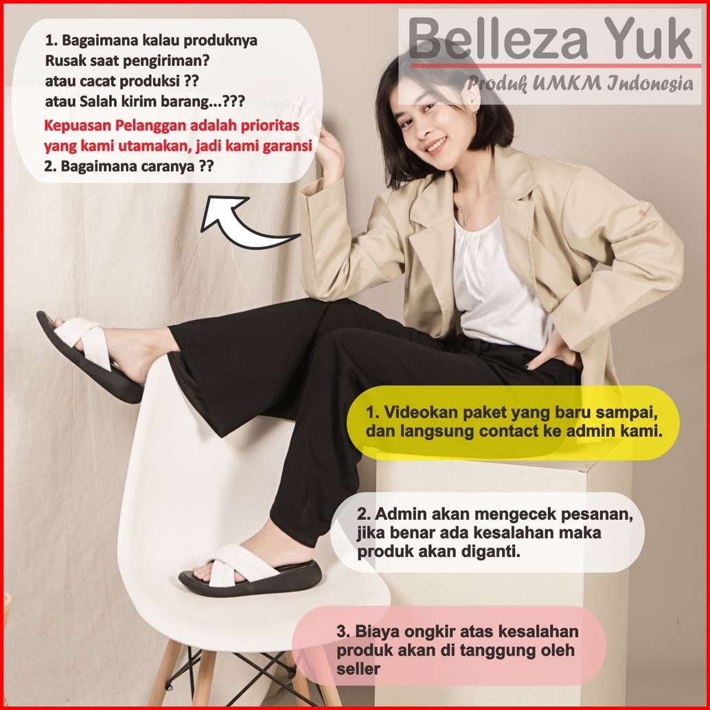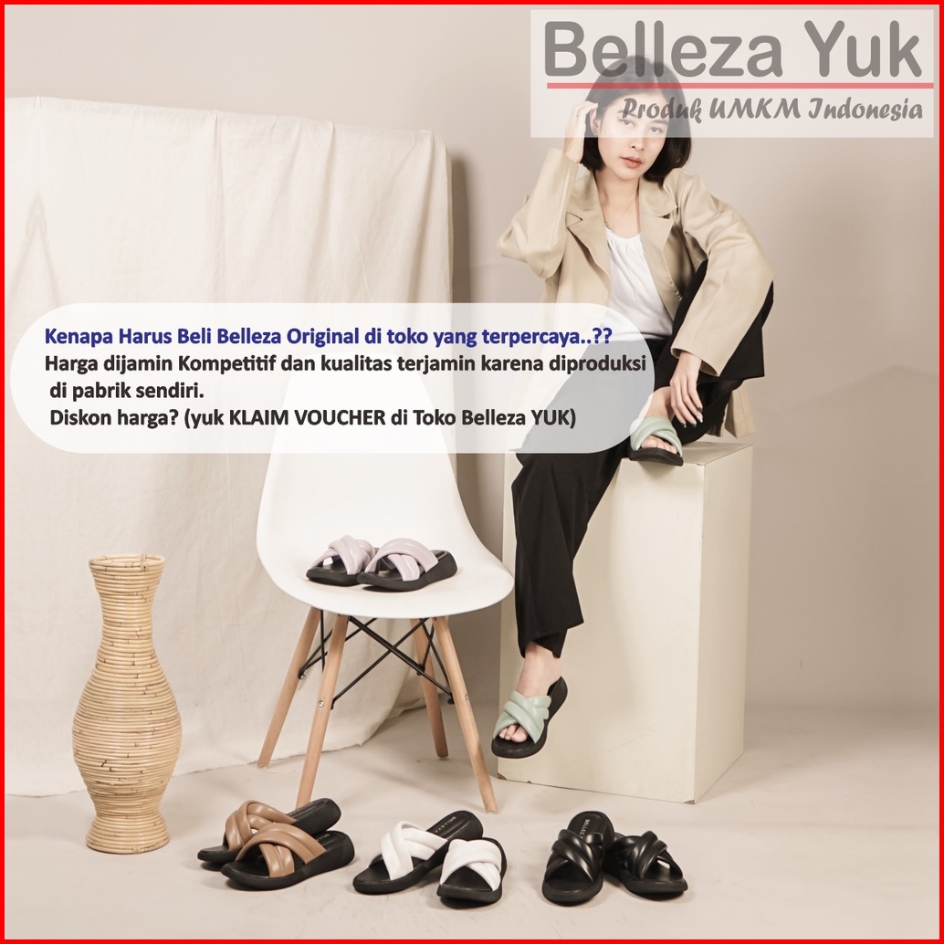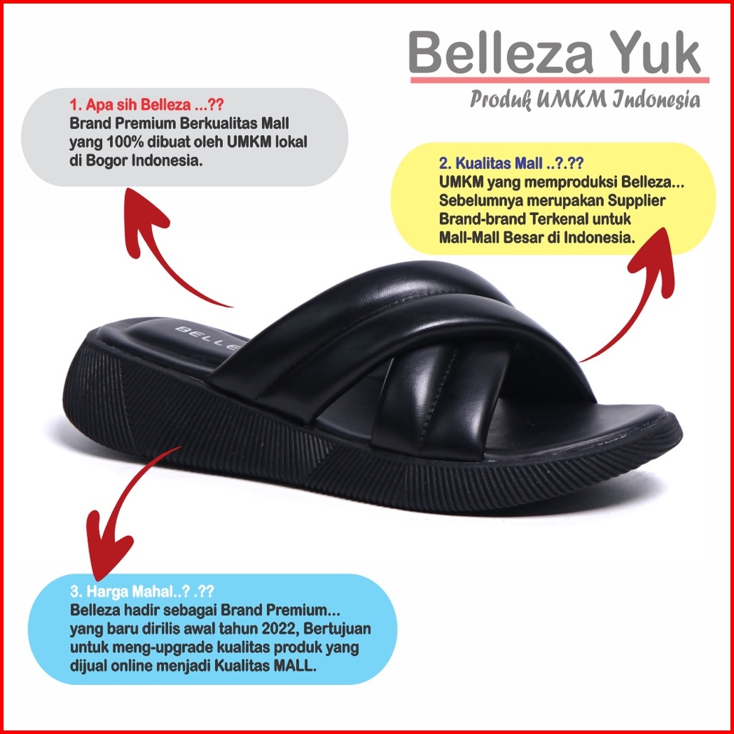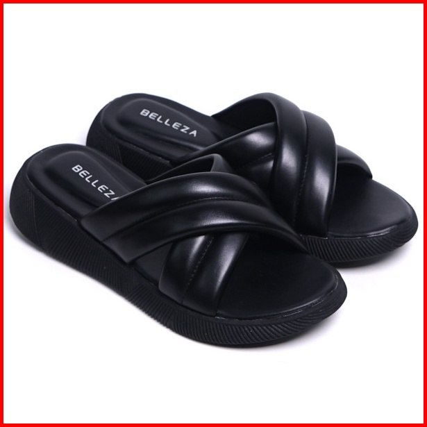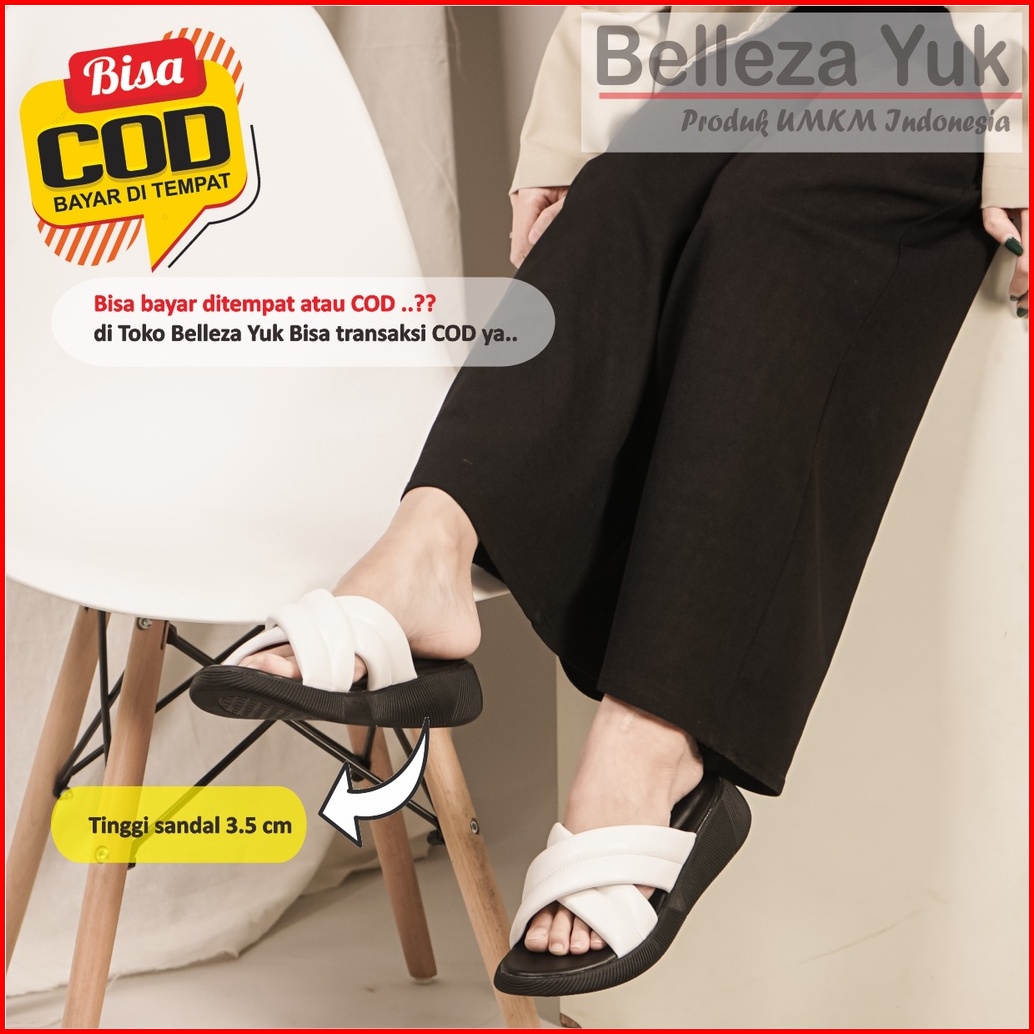 Belleza Yuk - Kanna Sandal Platform Wanita Size 26 - 41 Sendal Wedges Empuk Warna Hitam Black Model Silang Double Dua St