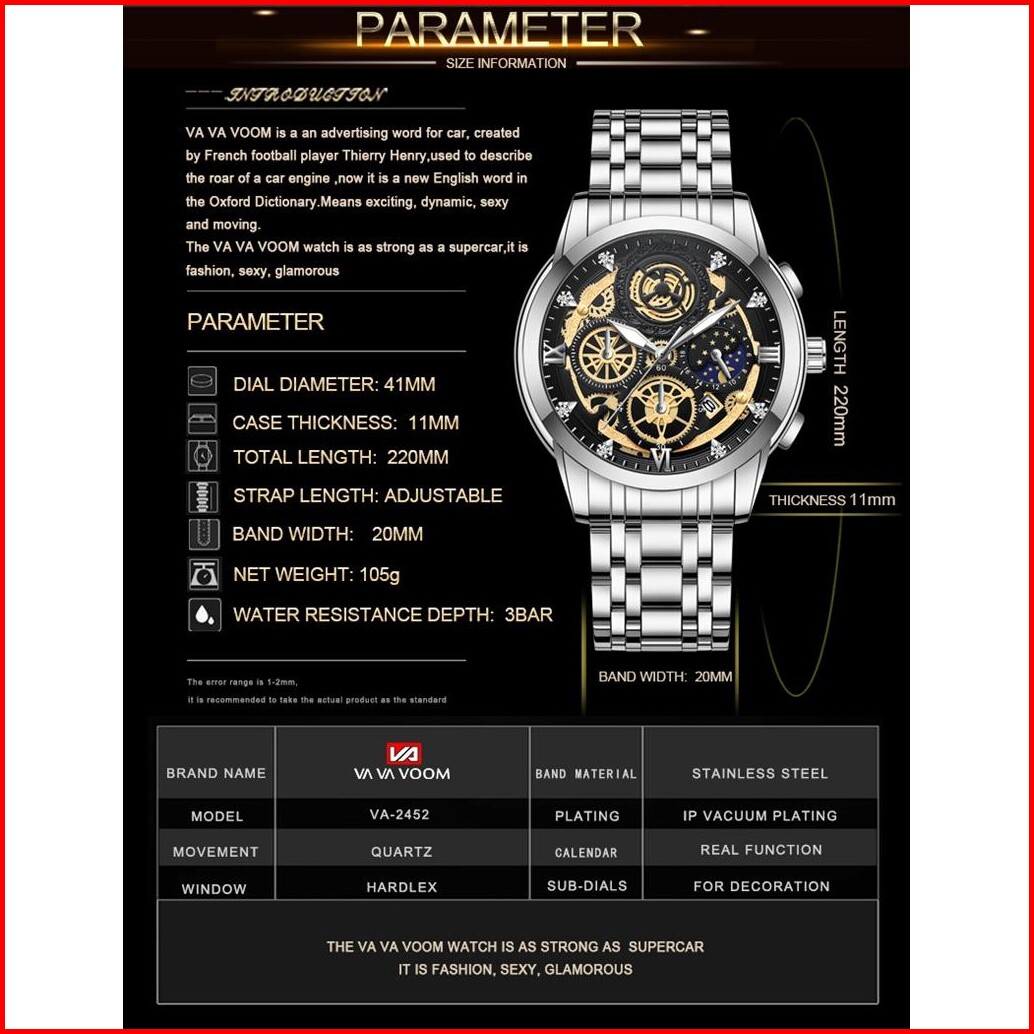 Vava Voom 2452 Date Jam Tangan Pria Stainless Steel Water Resist 3 Atm Anti Karat Original