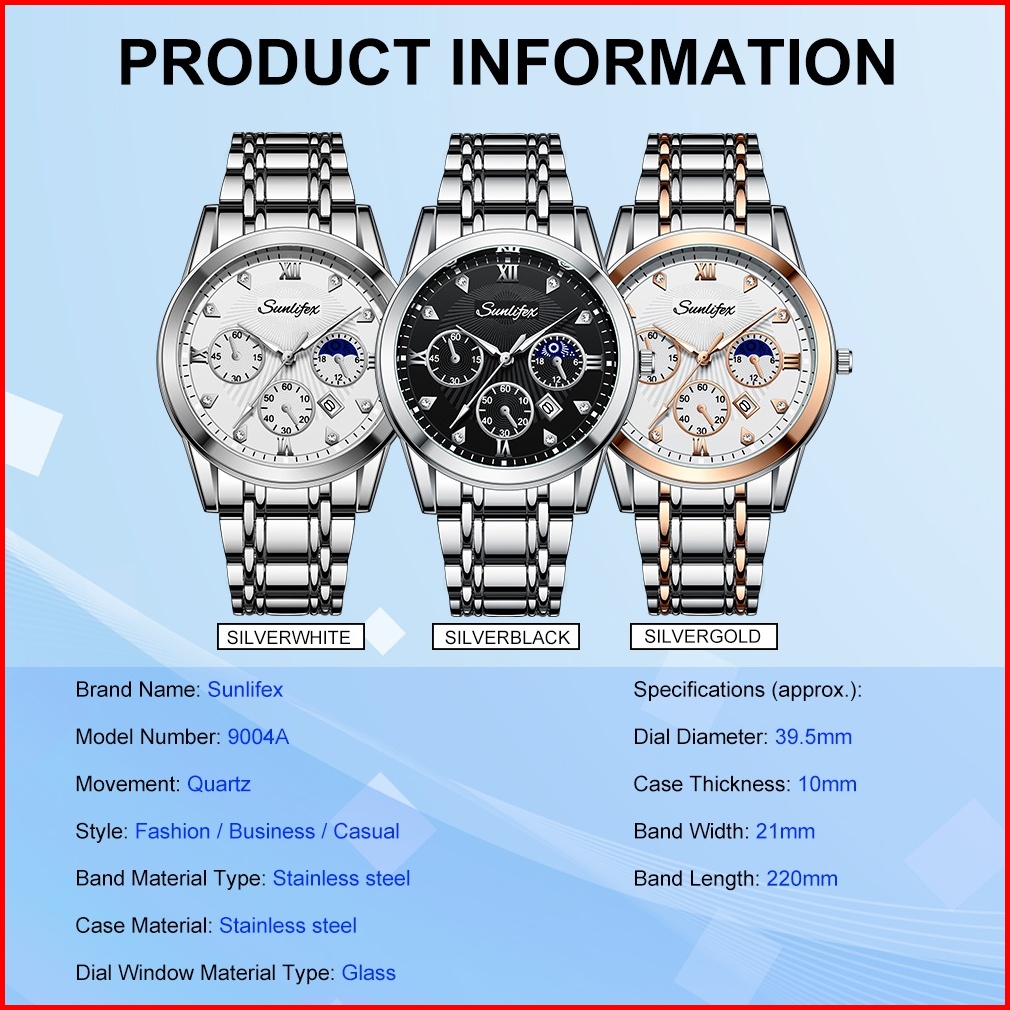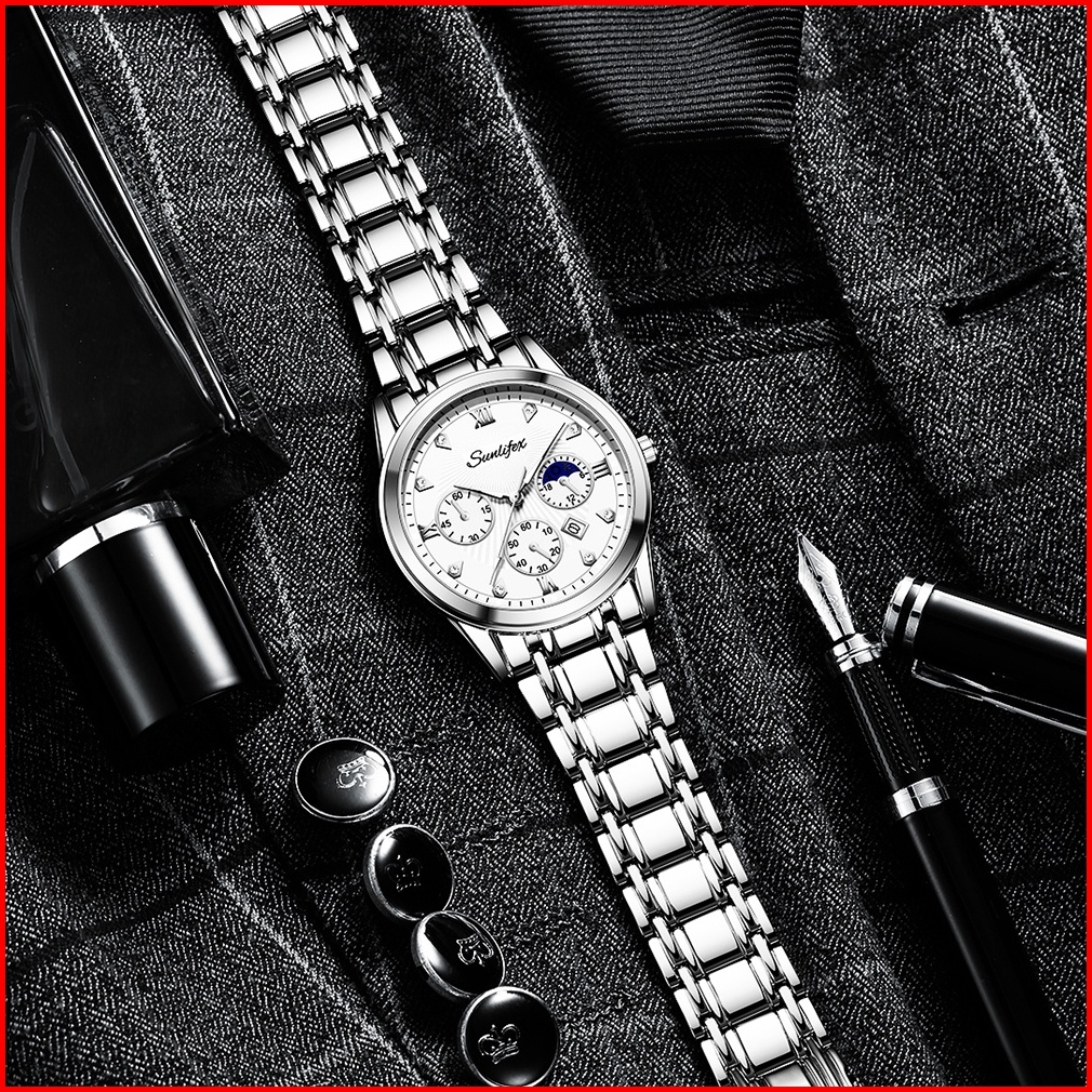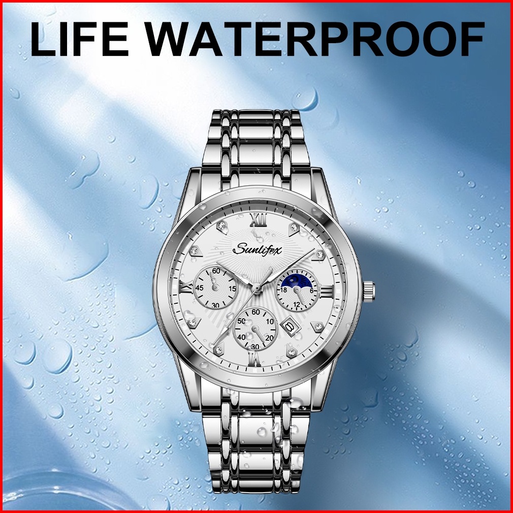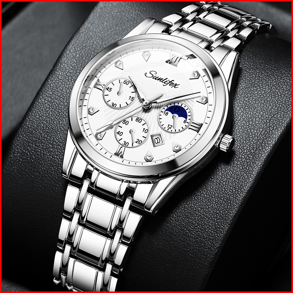 Sunlifex Jam Tangan Pria 9004a Original Mode Santai Pria Anti Air Kuarsa Tali Stainless Steel Jam Tangan Cowok
