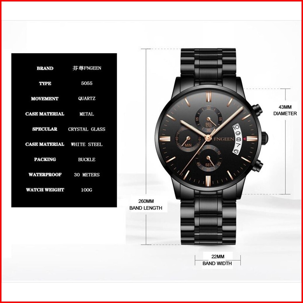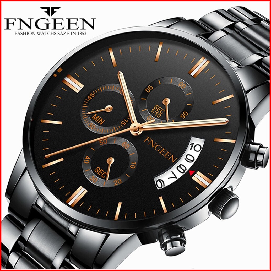 Jam Tangan Pria Analog Date Fngeen 5055 Water Resist Stainless Steel Original