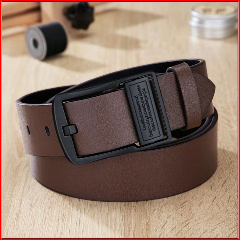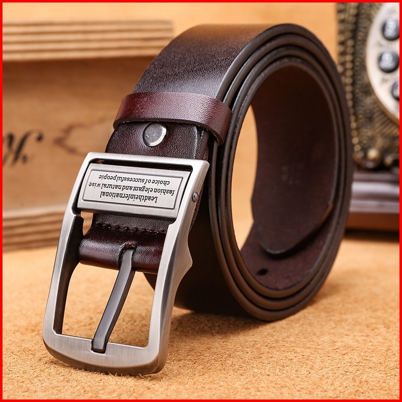 Sabuk Kulit Sapi Asli Sapi 2 Lapisan Korea Fashion Gaya Kancing Pin Klasik Ikat Pinggang Pria Belt
