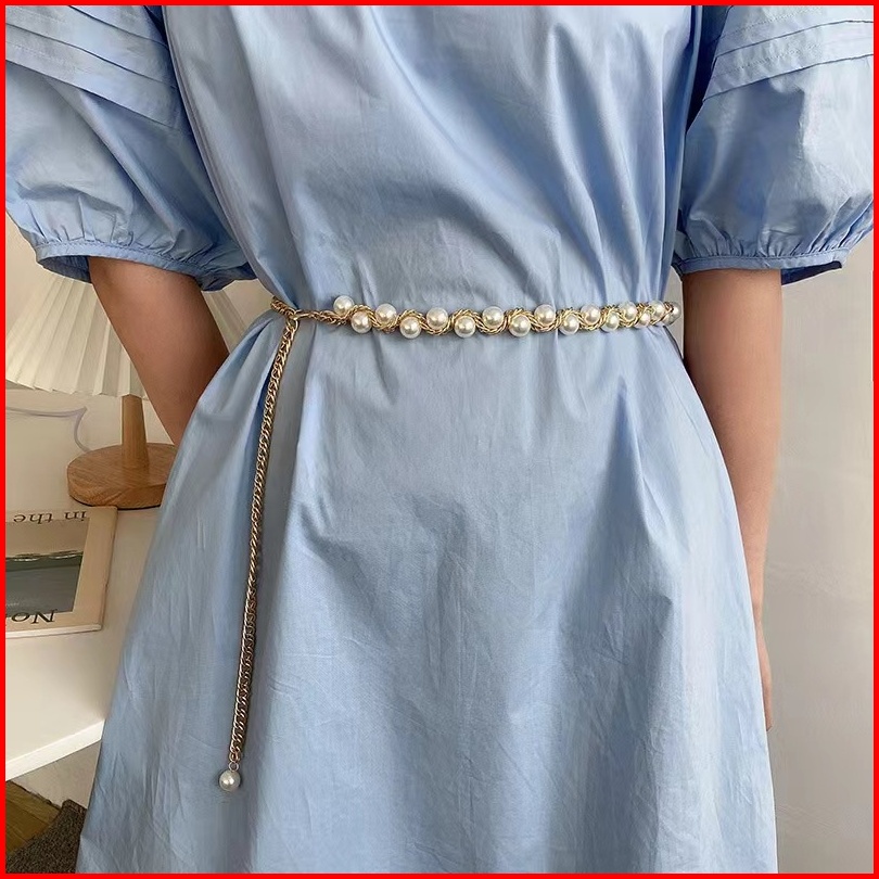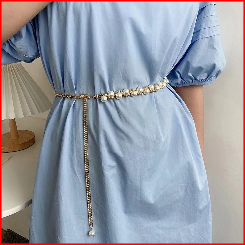 Ikat Pinggang Belt Rantai Slim Model Mutiara Imitasi Fashion Wanita Korea Fashion Womens Belt -lt035