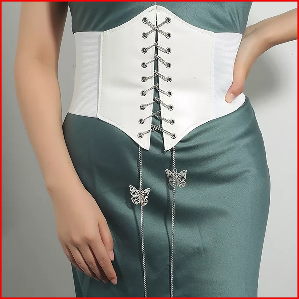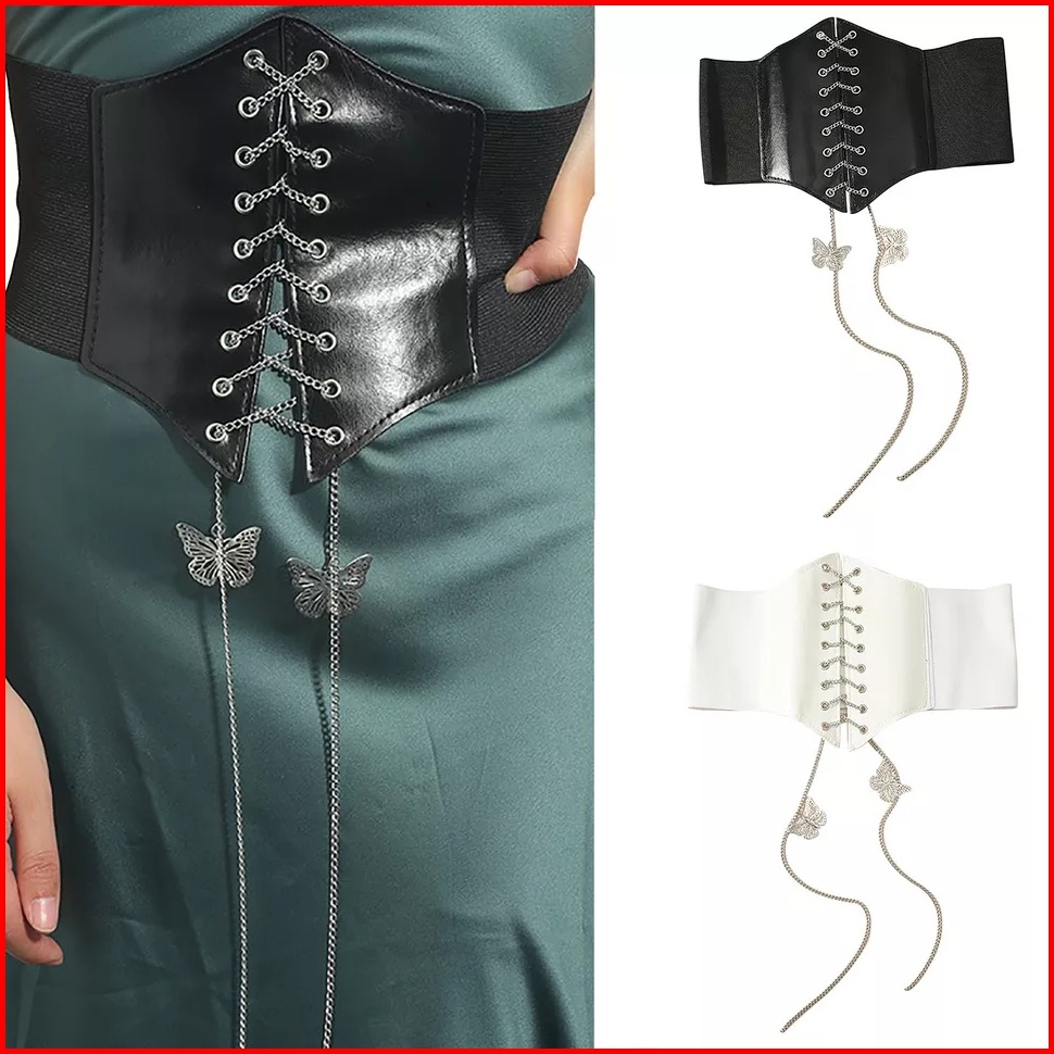 Belt Korset Sabuk Wanita Rantai Kupu Gotik Ikat Pinggang Renda Bustier