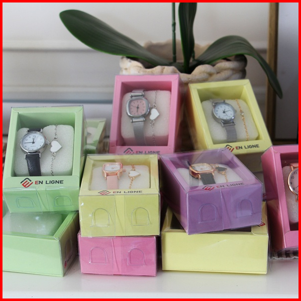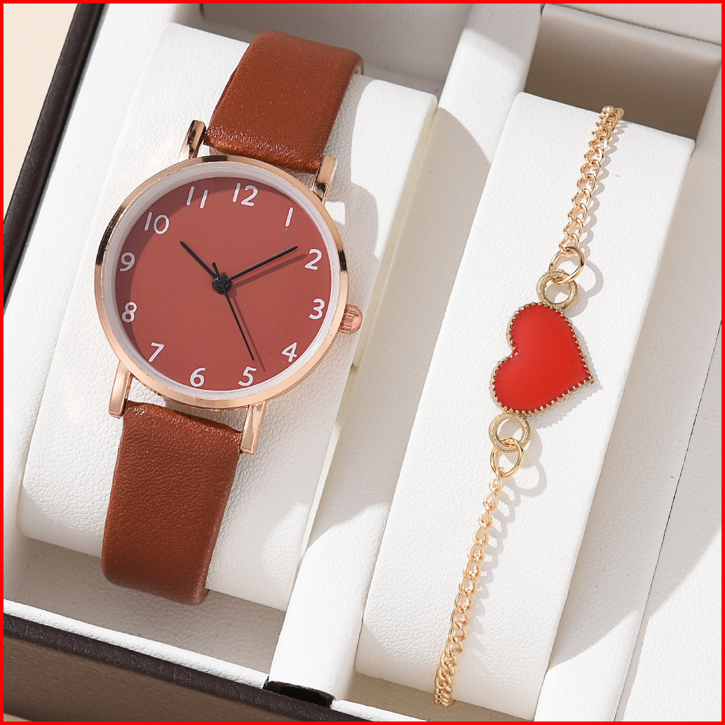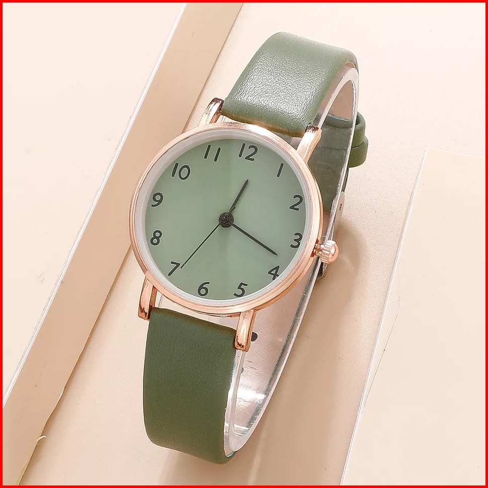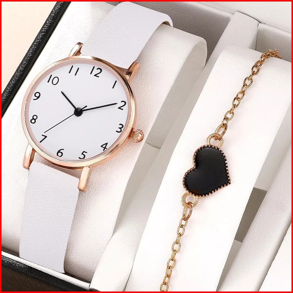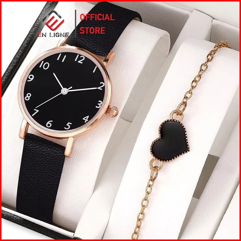 En Ligne El540set - Jam Tangan Fashion Wanita Model Bulat Tali Kulit Set Dengan Gelang Dan Box