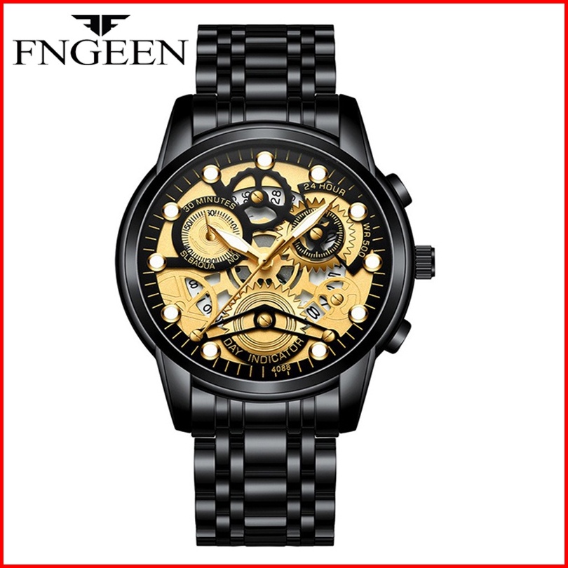 Fngeen 4088 Jam Tangan Pria Luxury Stainless Steel Quartz Original Anti Air Watch Kotak Gratis