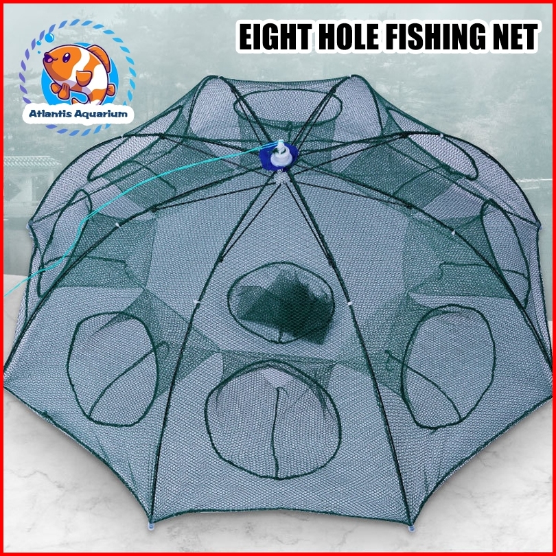 8 Lubangtrap Cage Umbrella Net Fish Ikan Udang Kepiting Lele Lobster Sungai Laut Danau Fish Trap Net