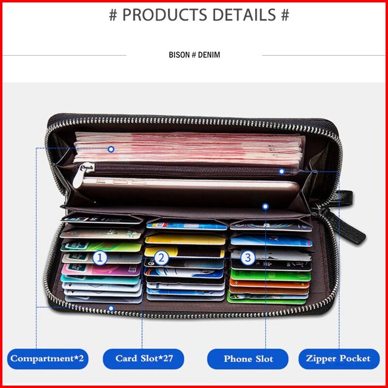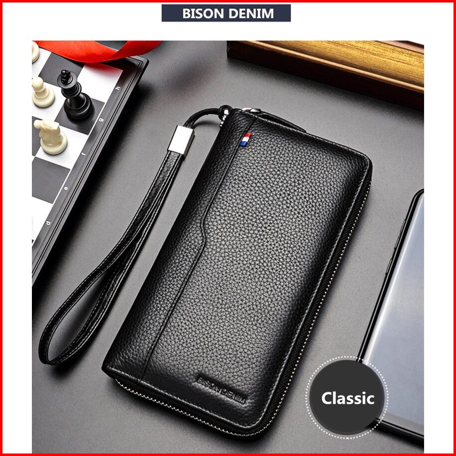 Bison Denim Dompet Panjang Kartu Clutch Pria Kulit Sapi Asli W8226
