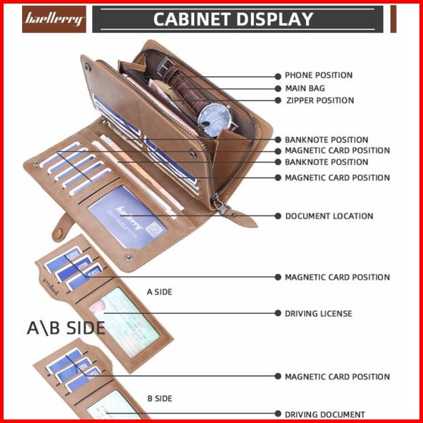 Baellerry Dompet Panjang Pria Wanita Multifungsi Premium Pu Leather Dengan Slot Hp Kartu Ekstra Model Lipat Elegan Denga
