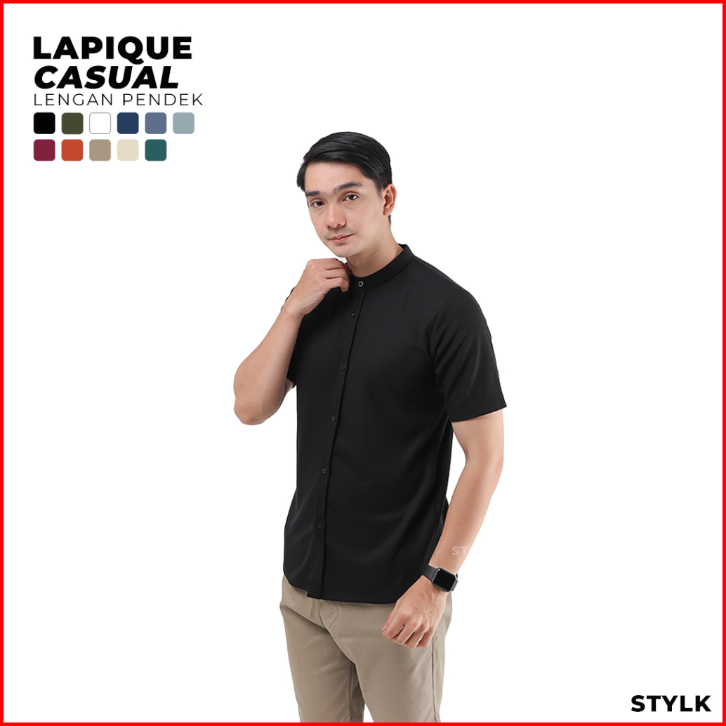Kemeja Hitam Pria Casual Lengan Pendek Slim Fit Anti Kusut Nyaman Dan Lembut - Stylelaki Lapique