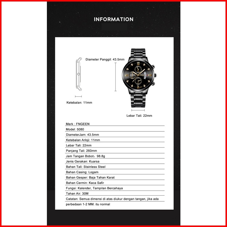 Fngeen 5080 Jam Tangan Pria Luxury Bercahaya Stainless Steel Quartz Original Anti Air Watch Kotak Gratis