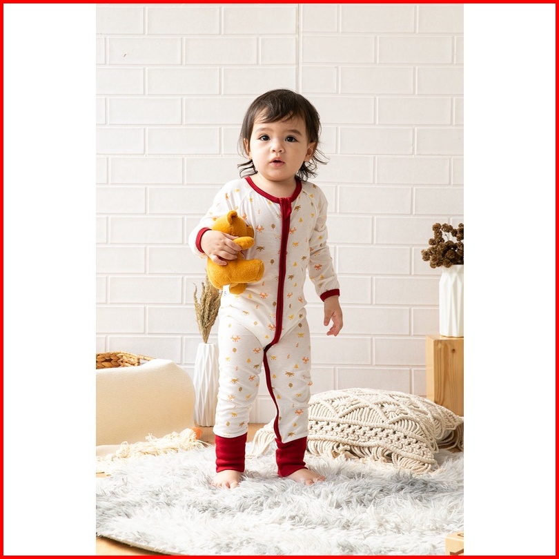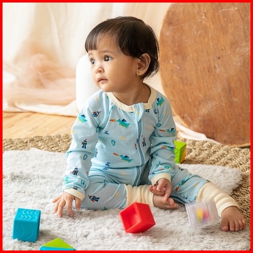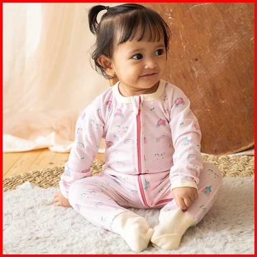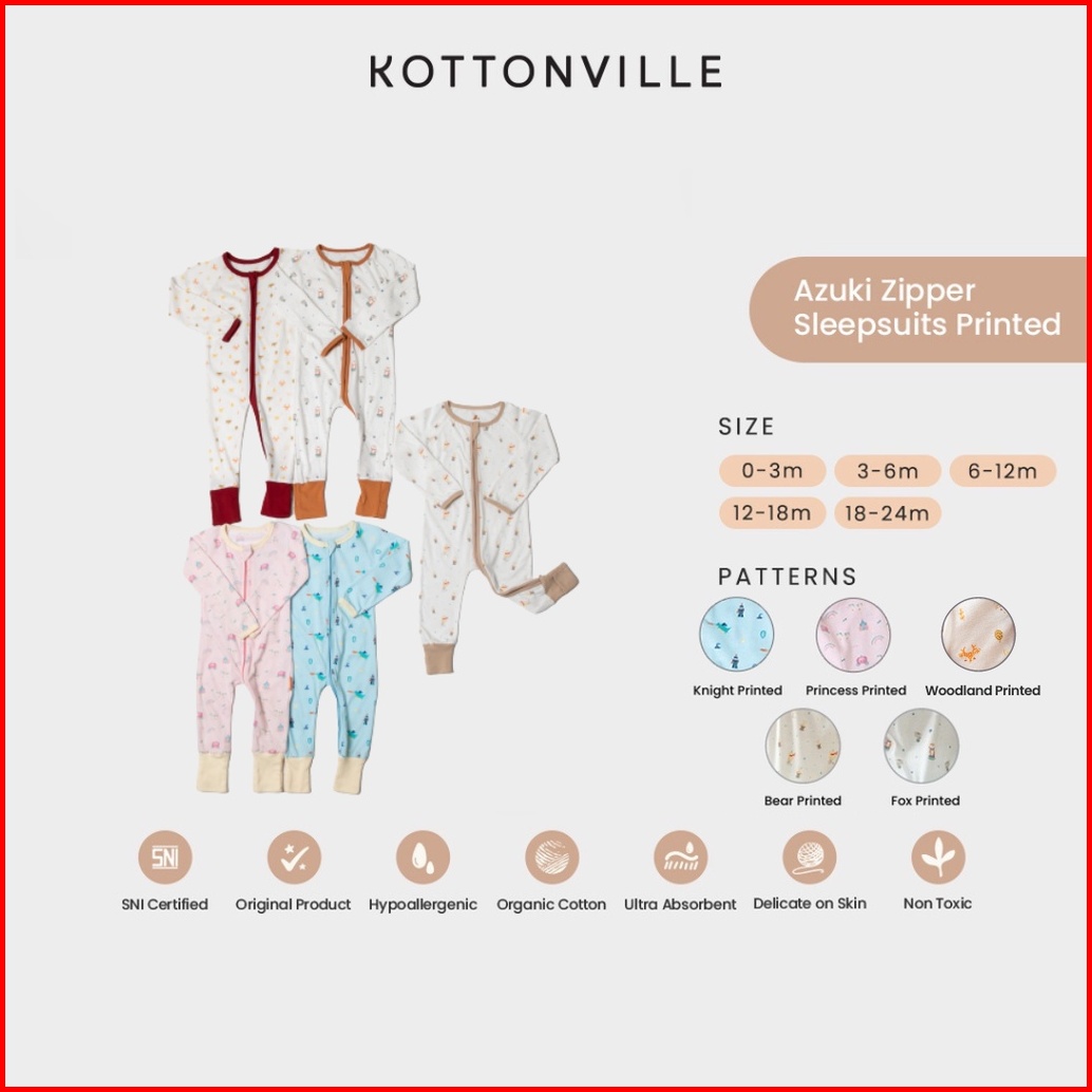 Kottonville - Setelan Baju Tidur Piyama Anak Bayi Essentials Azuki Zipper Sleepsuits Printed Color 0-2 Yrs Laki-laki Dan